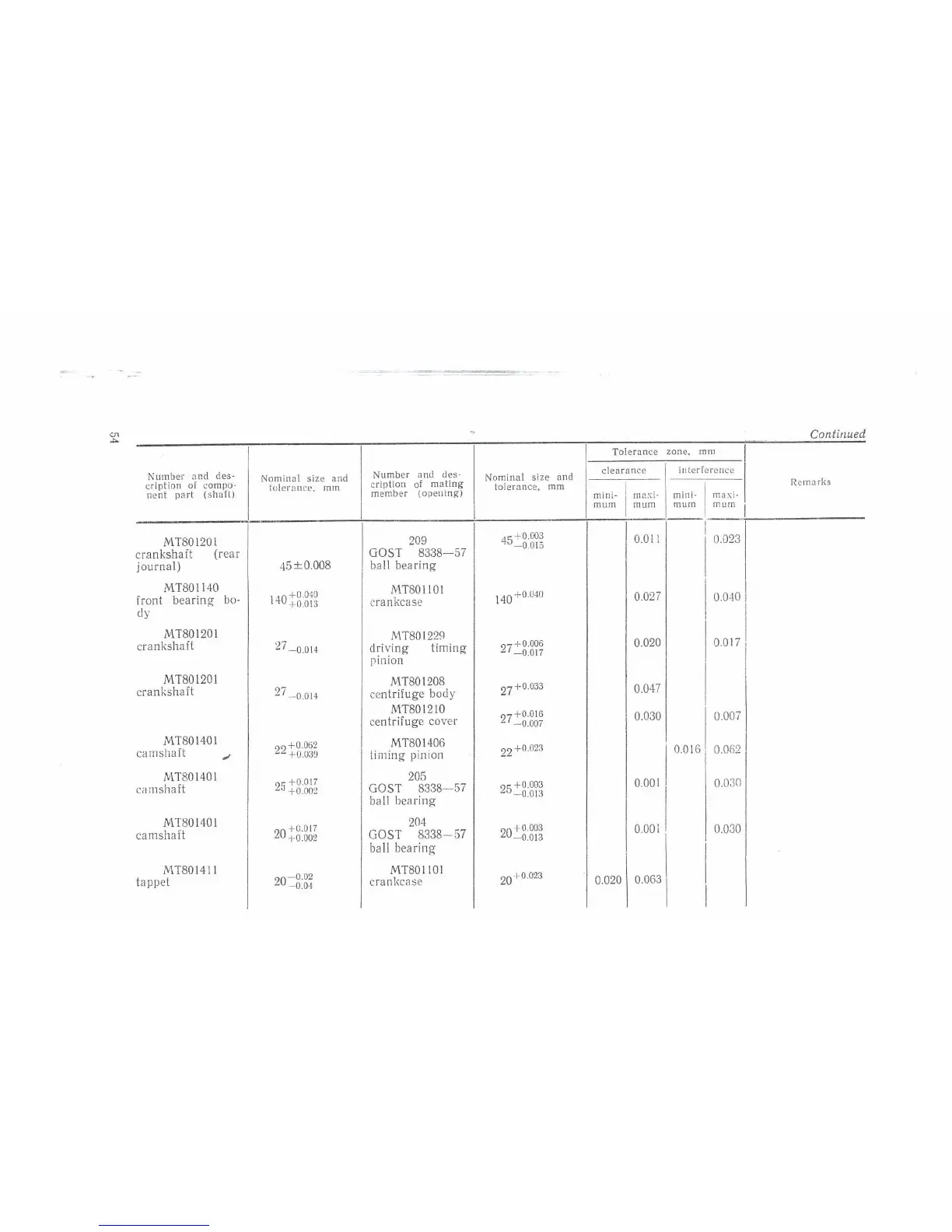 tolerance. mm
