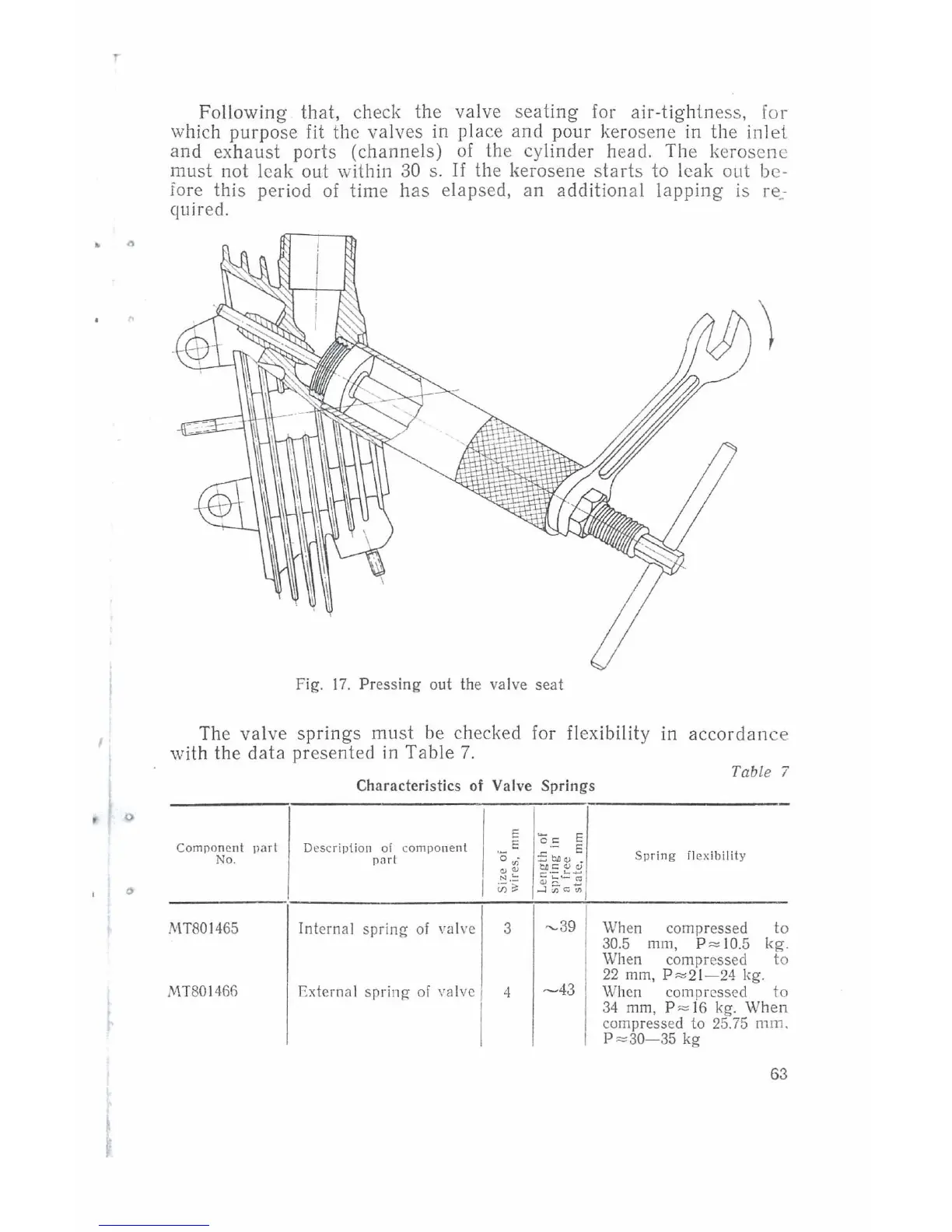 Dnepr MT10 - Characteristics of Valve Springs; Pressing out the Valve Seat