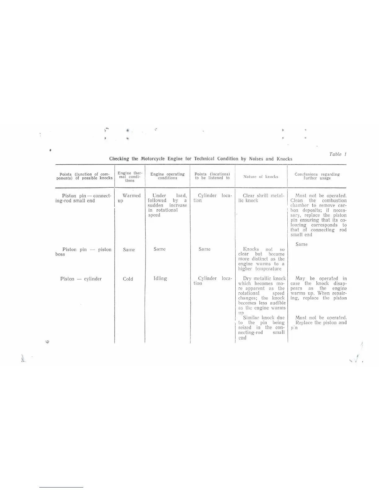 Checking the Motorcycle Engine lor Technical Condition by Noises and Knocks