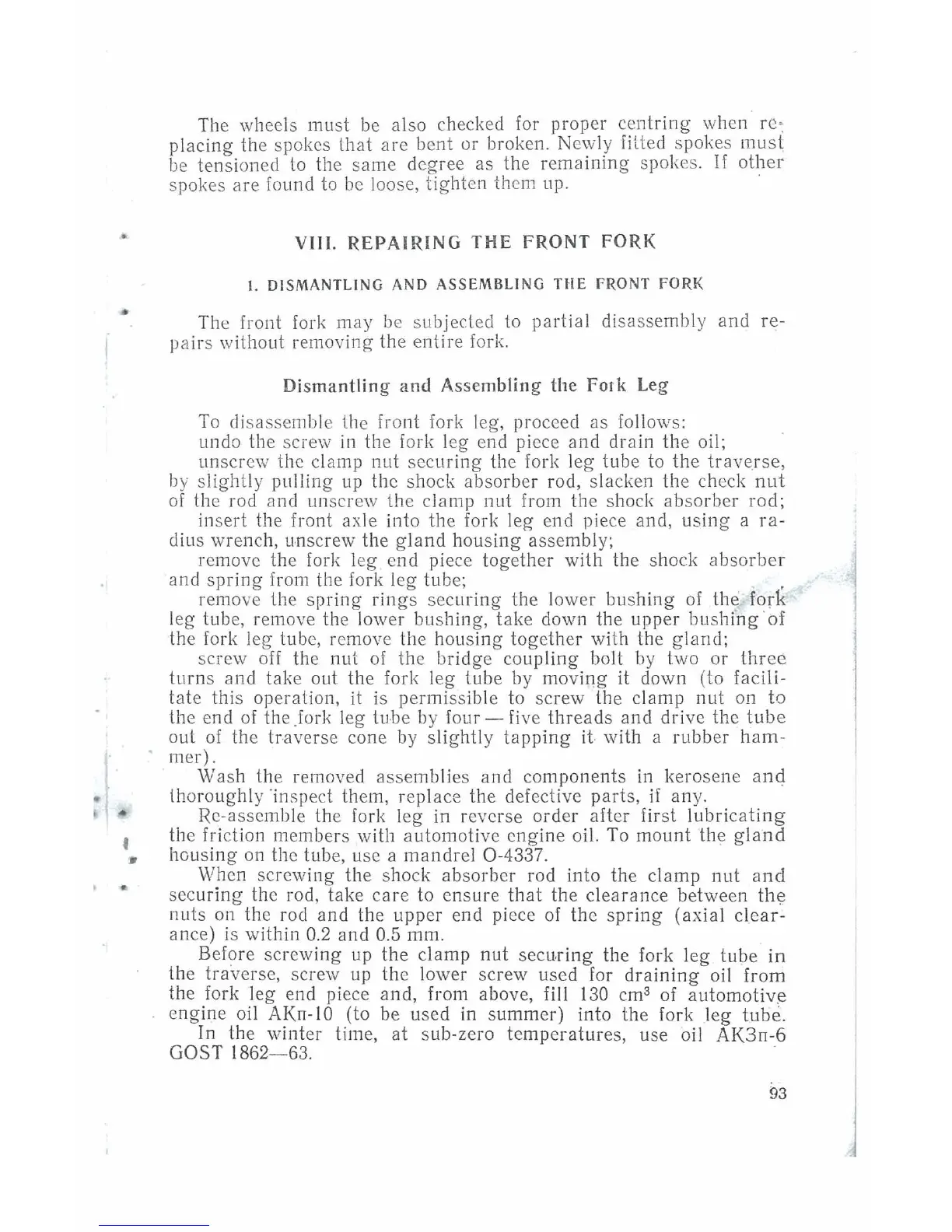 Dnepr MT10 - VIII. Repairing the Front Fork