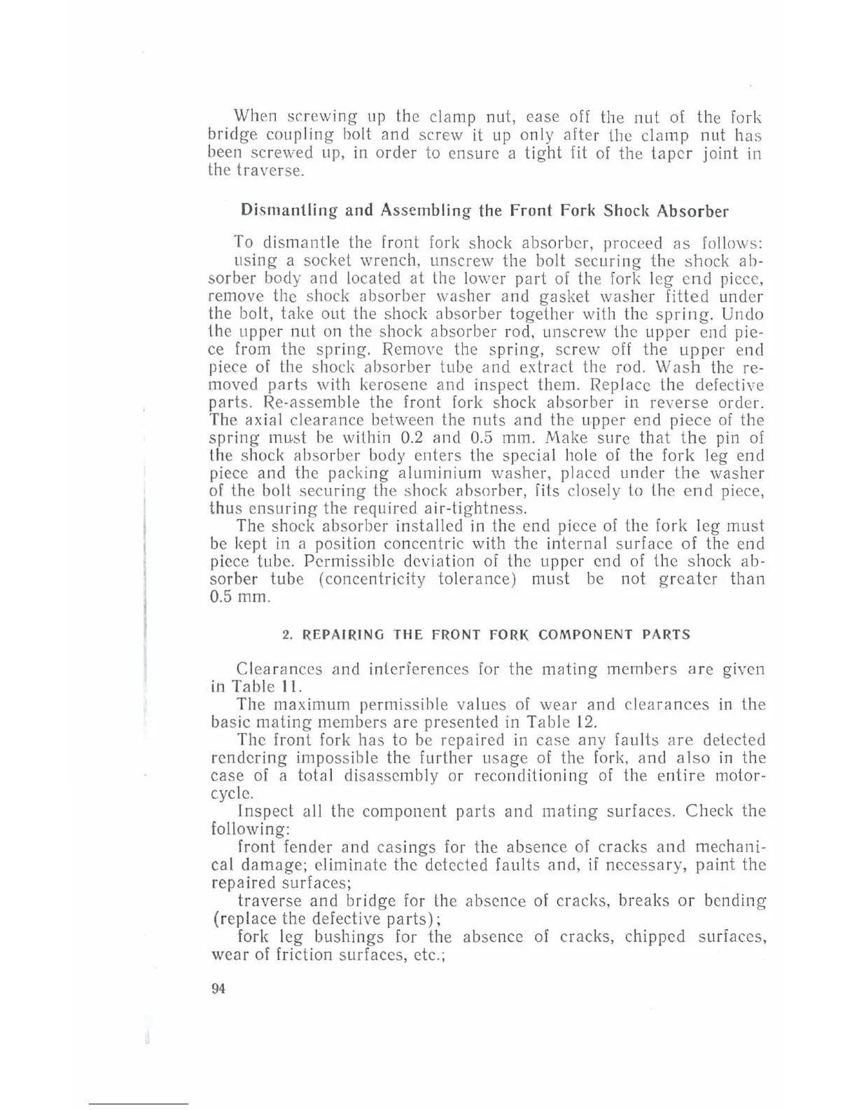 parts. Re-assemble the front fork shock absorber in