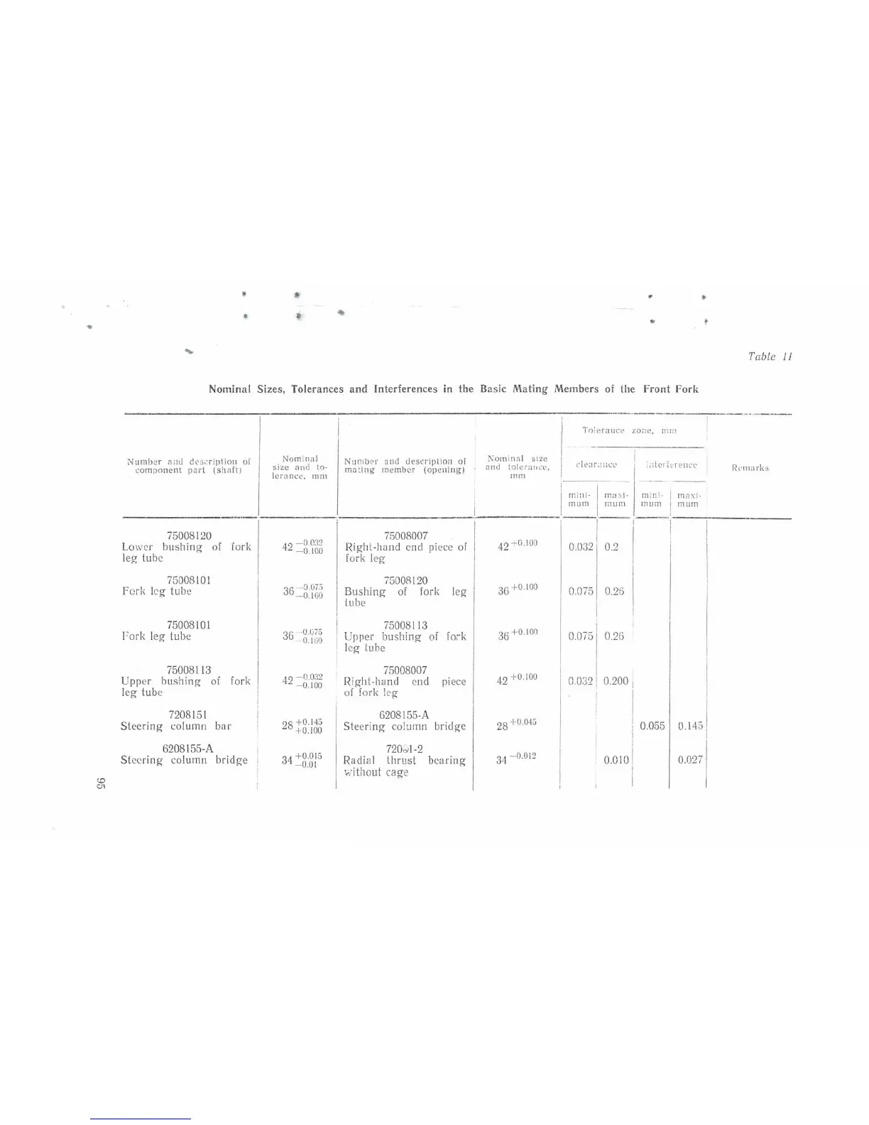 Dnepr MT10 - Sizes, Tolerances, Interferences in Front Fork Basic Mating Members