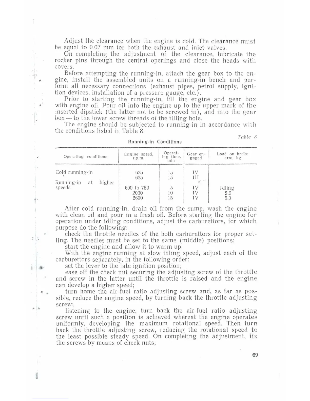 Dnepr MT9 - Ill; Running-In Conditions