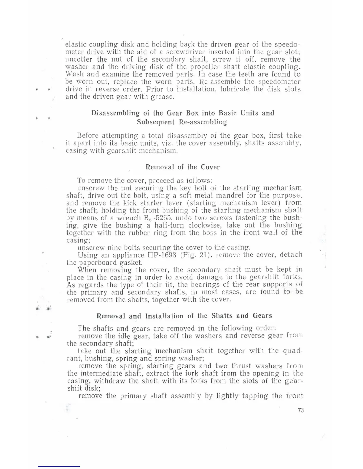 Dnepr MT9 - Gear Box Disassembling into Basic Units and Reassembling; Removal of the Cover; Shafts and Gears Removal and Installation
