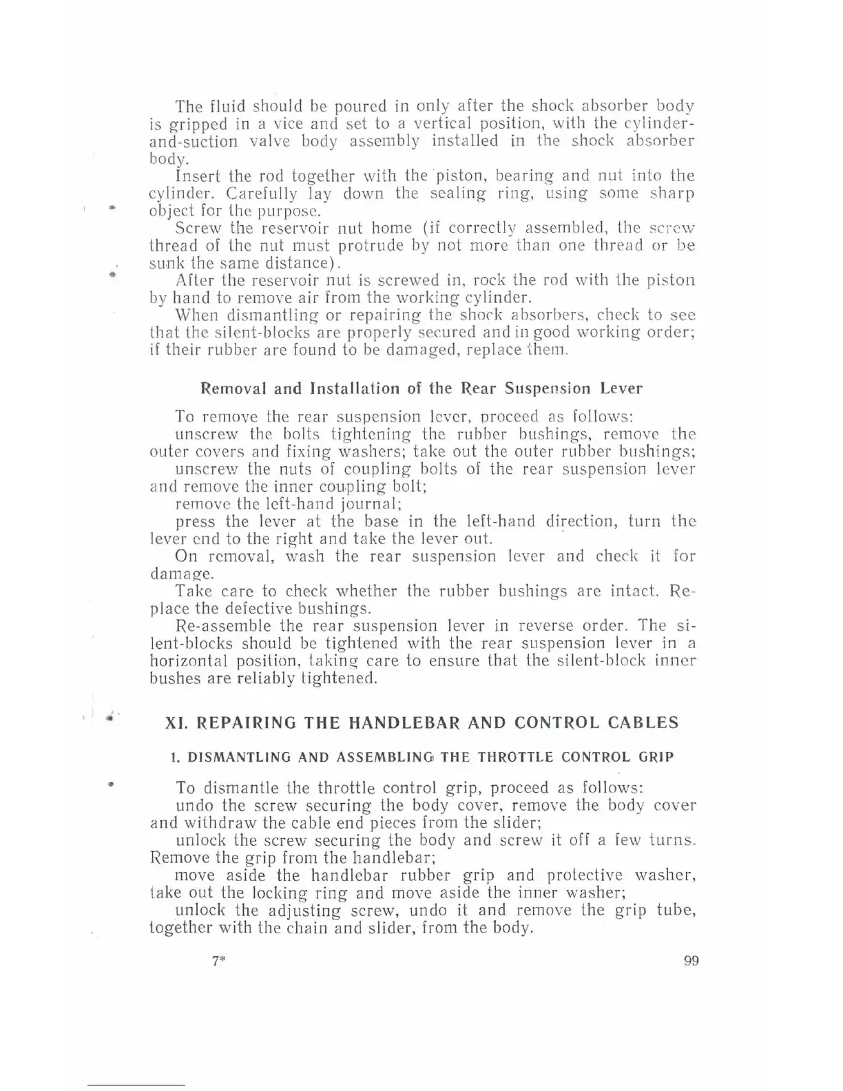 Dnepr MT9 - Handlebar and Control Cables Repair; Rear Suspension Lever Removal and Installation; Throttle Control Grip Dismantling and Assembling; XI. R.epair.ing the Handlebar. and Control Cables