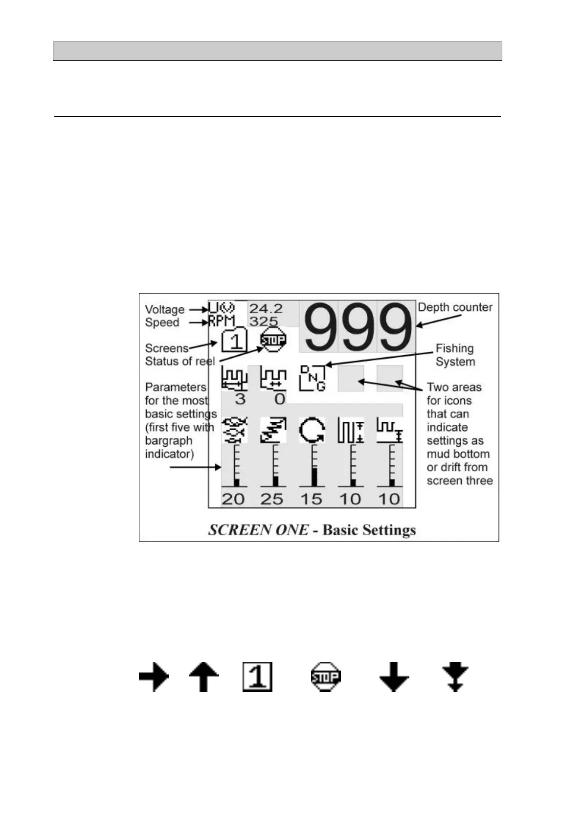 fathoms) and the status of the reel i.e. if it is jigging, paying out, hauling or in
