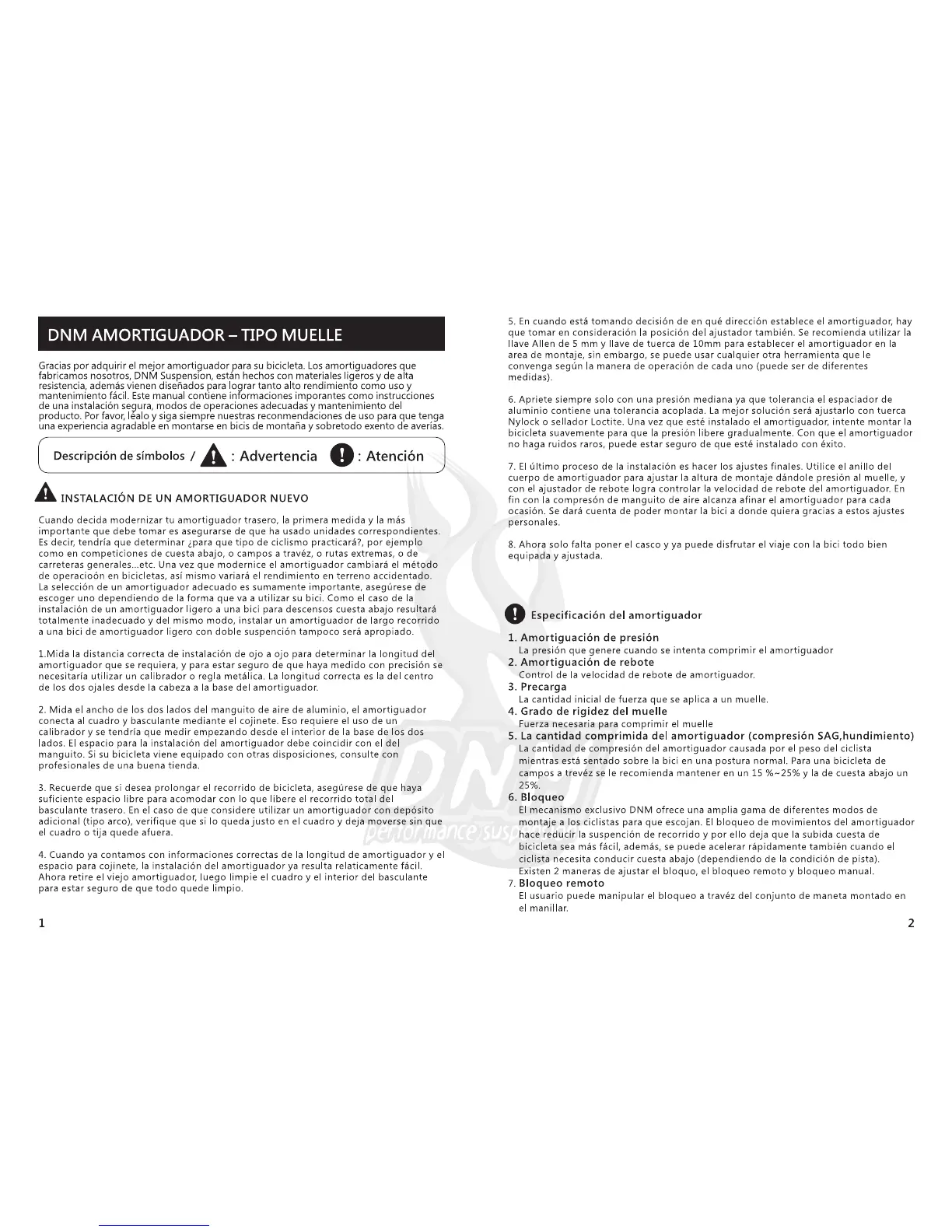 DNM DV-22AR - DNM Shock Absorber - Spring Type Overview; Symbol Descriptions; New Shock Absorber Installation; Shock Absorber Specifications