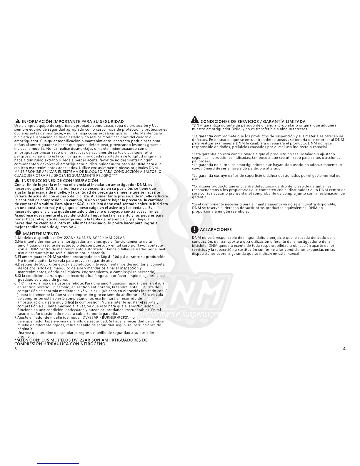 DNM DV-22AR - Important Safety Information; Configuration Instructions; Service Conditions; Limited Warranty; Clarifications
