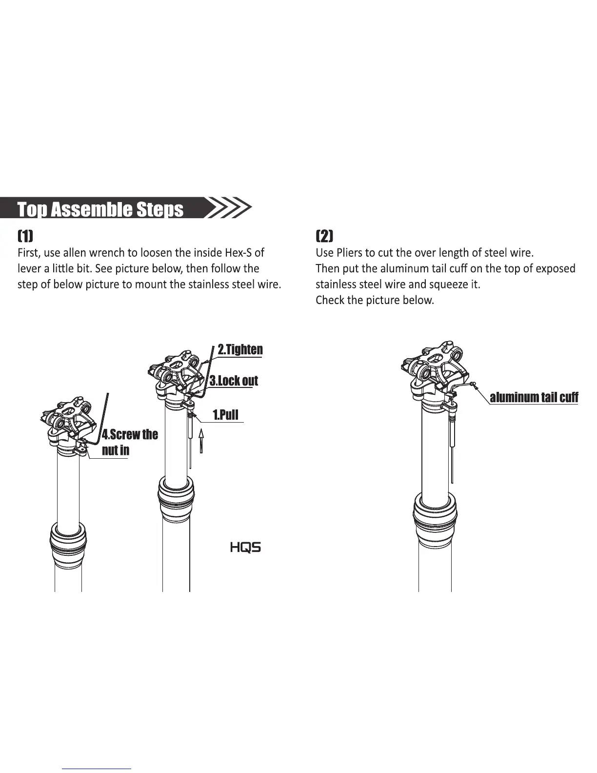 DNM HQS - Top Assembly Steps; Mounting Stainless Steel Wire; Securing Cable End