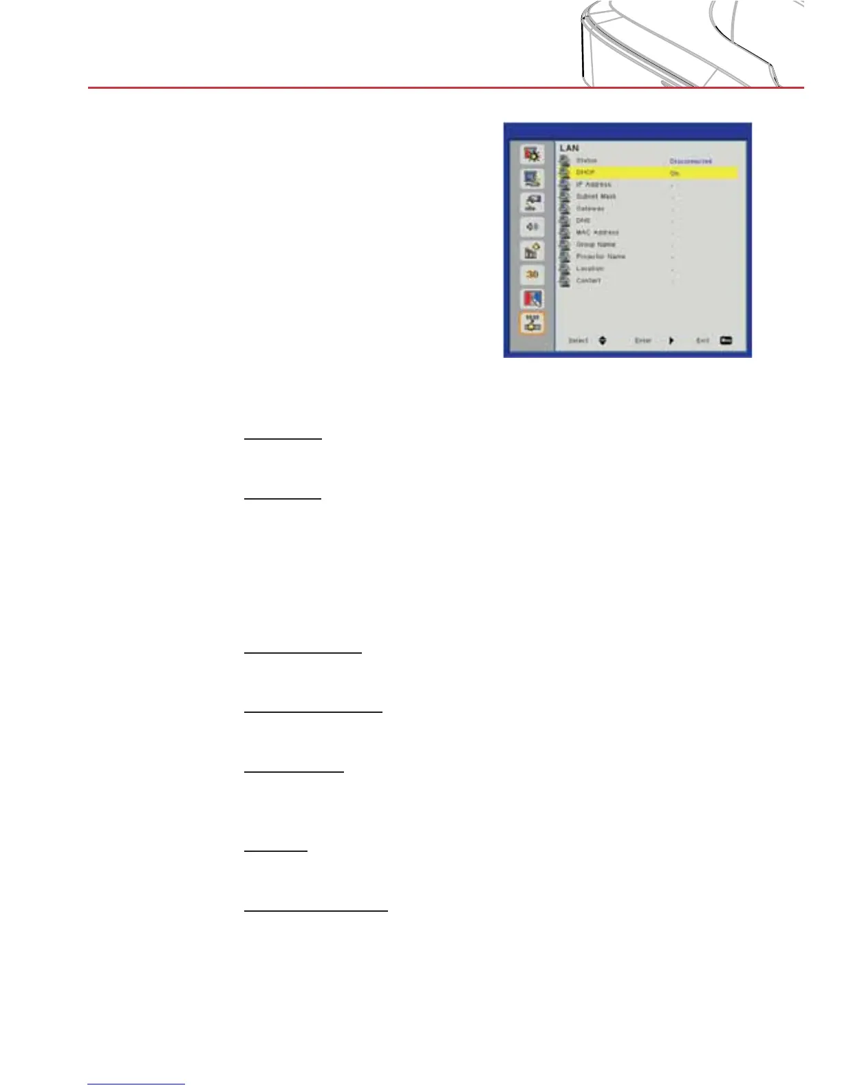 On: Choose “On” to let the projector to obtain an IP address >