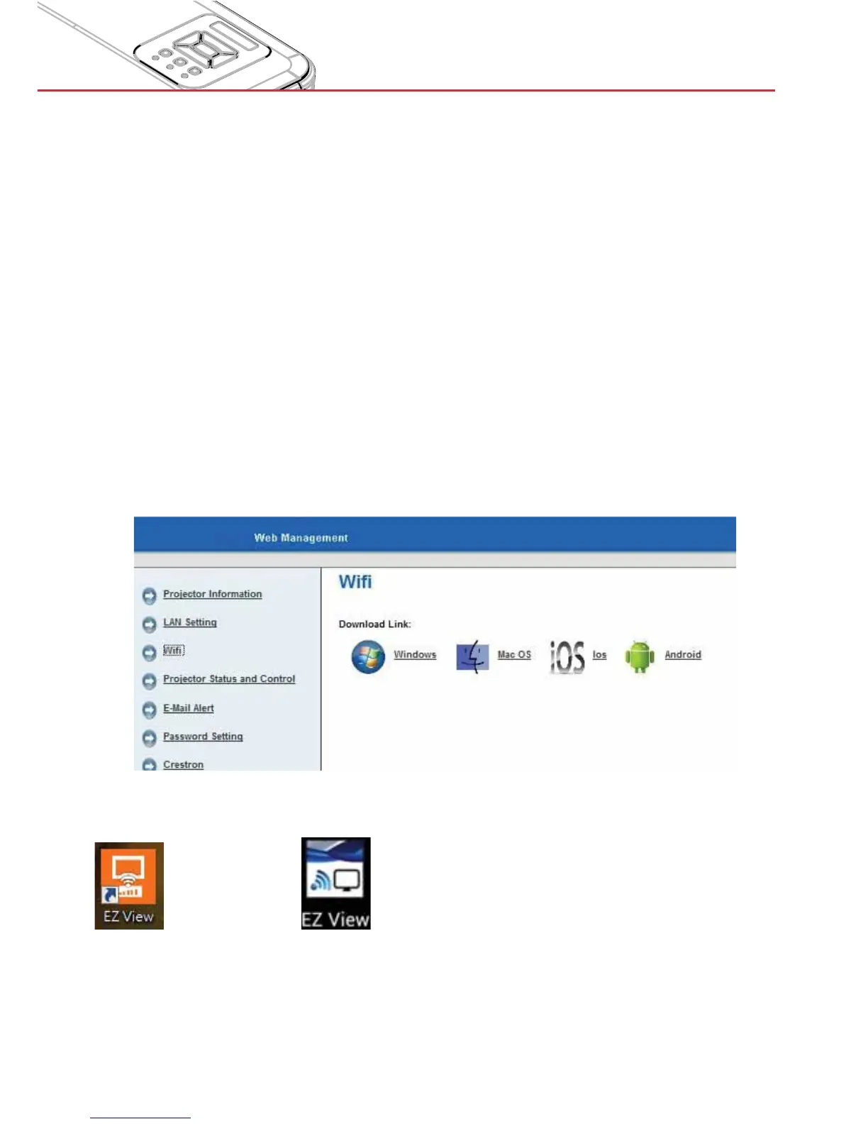 EZView is an APP and software that can wirelessly transfer content from a smart phone,