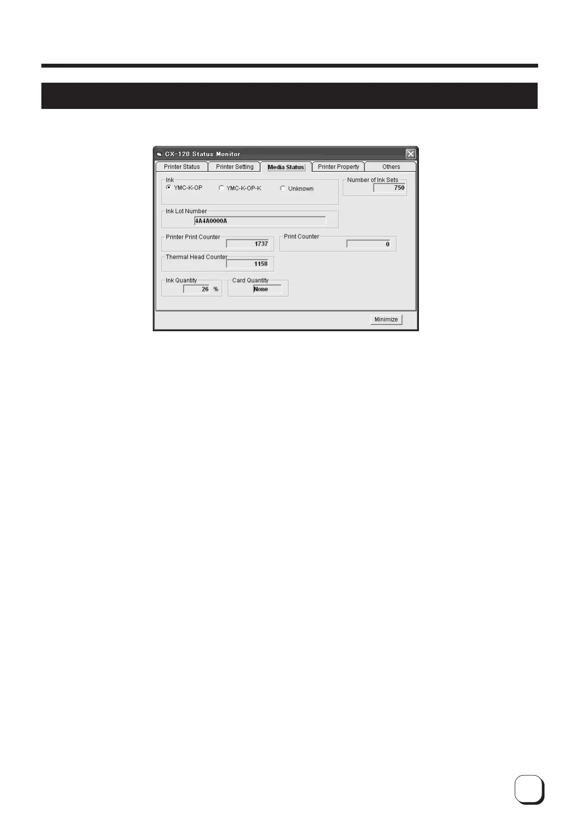 1 Ink : Displays the installed ink ribbon. "Unknown" when ink ribbon cannot be recognized correctly.