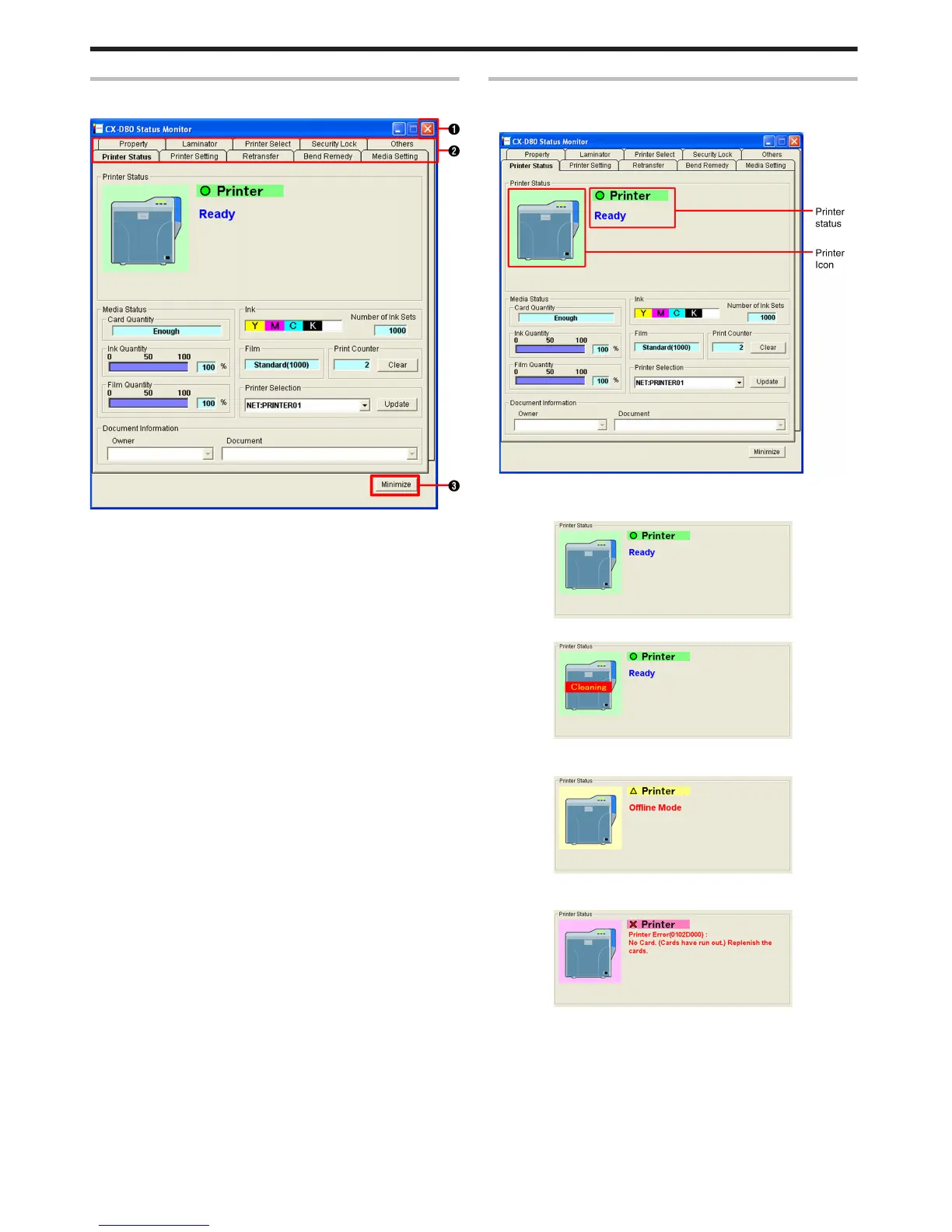 Minimizes the status monitor to an icon. The icon is displayed in the