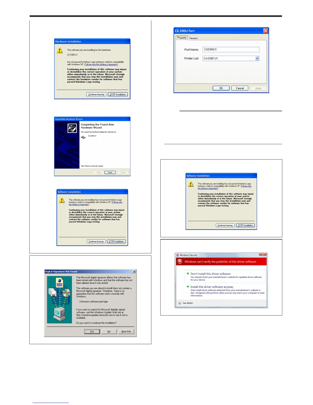 A [CX-D80U Port] screen appears.