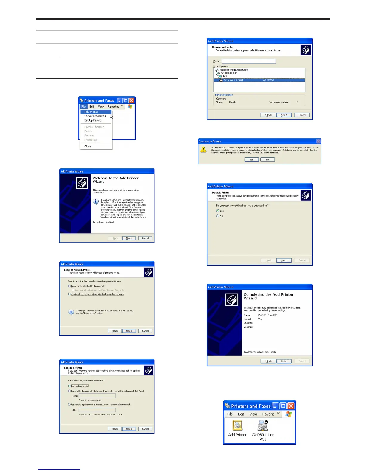 A [Printers and Faxes] screen appears.