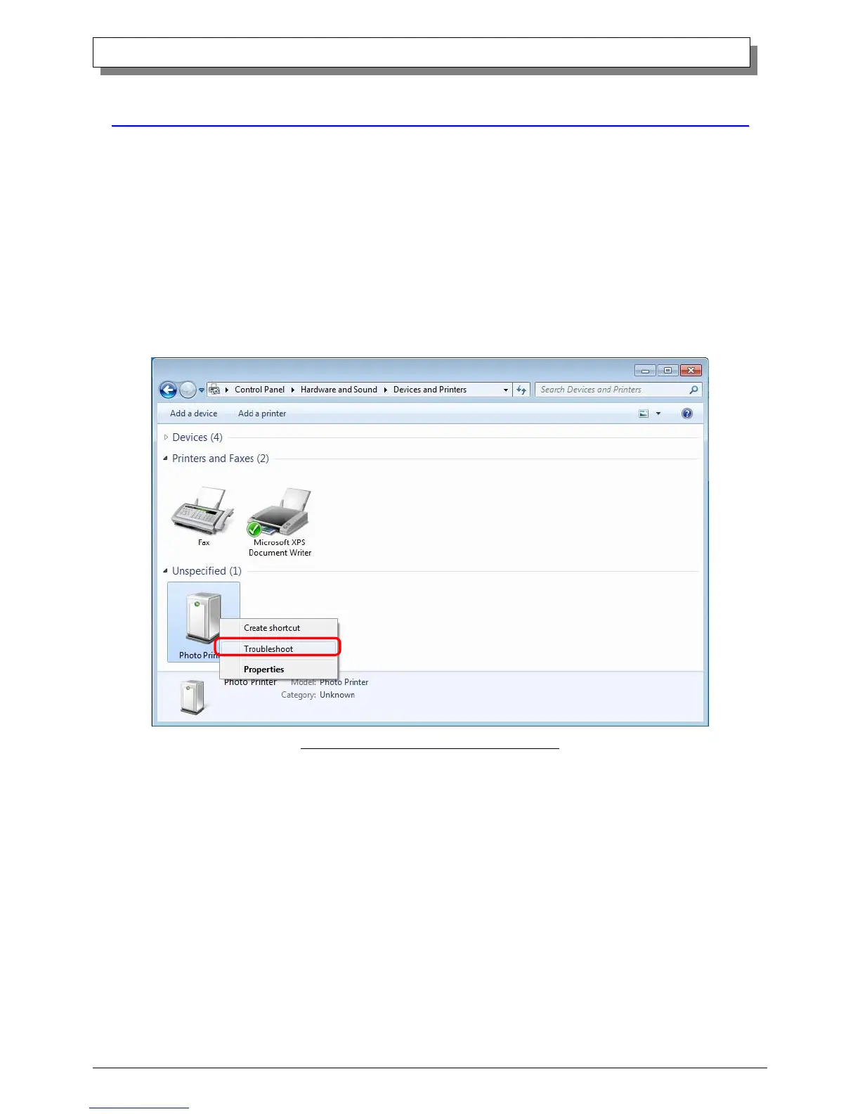 In the "Unspecified" device of the "Devices and Printers" window, do the right click of the "Photo Printer", and click on the