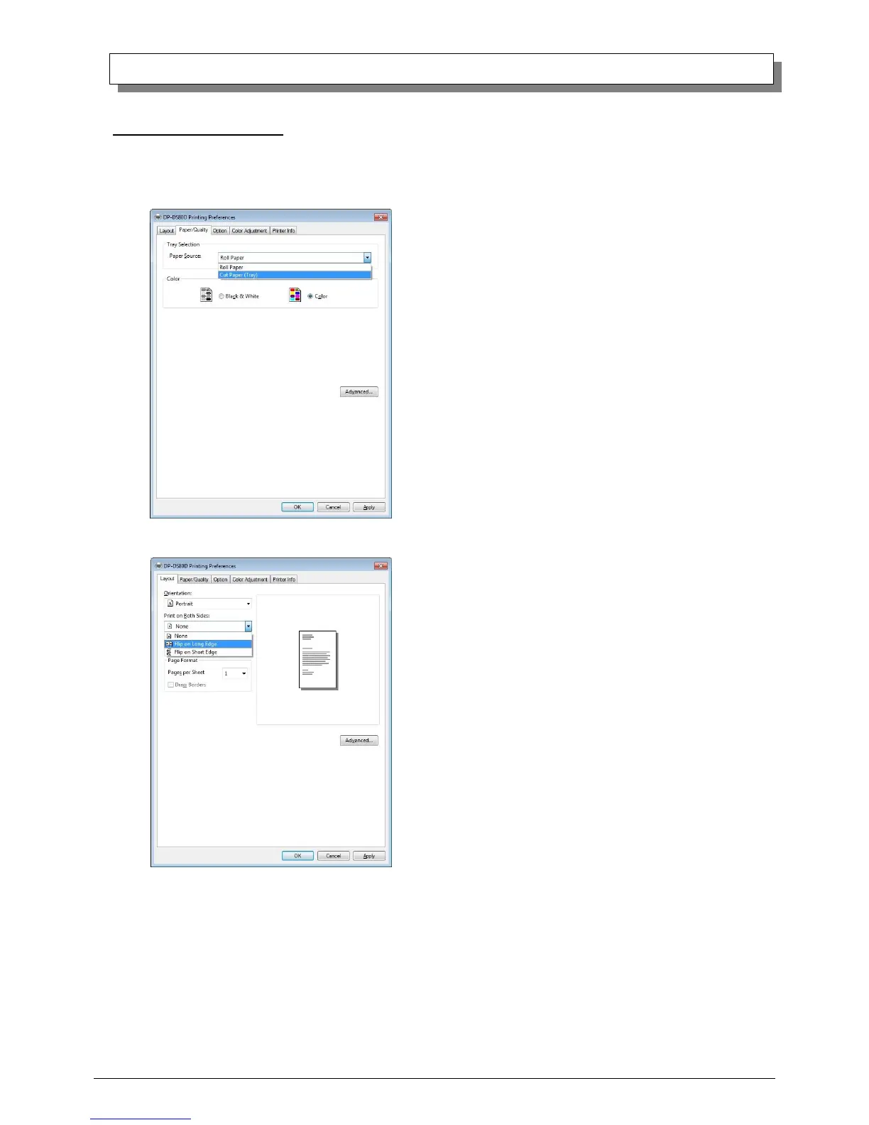 2. Select “Short-edge” or “Long-edge” orientation under Duplex Printing in the “2.2.1 Layout” tab.