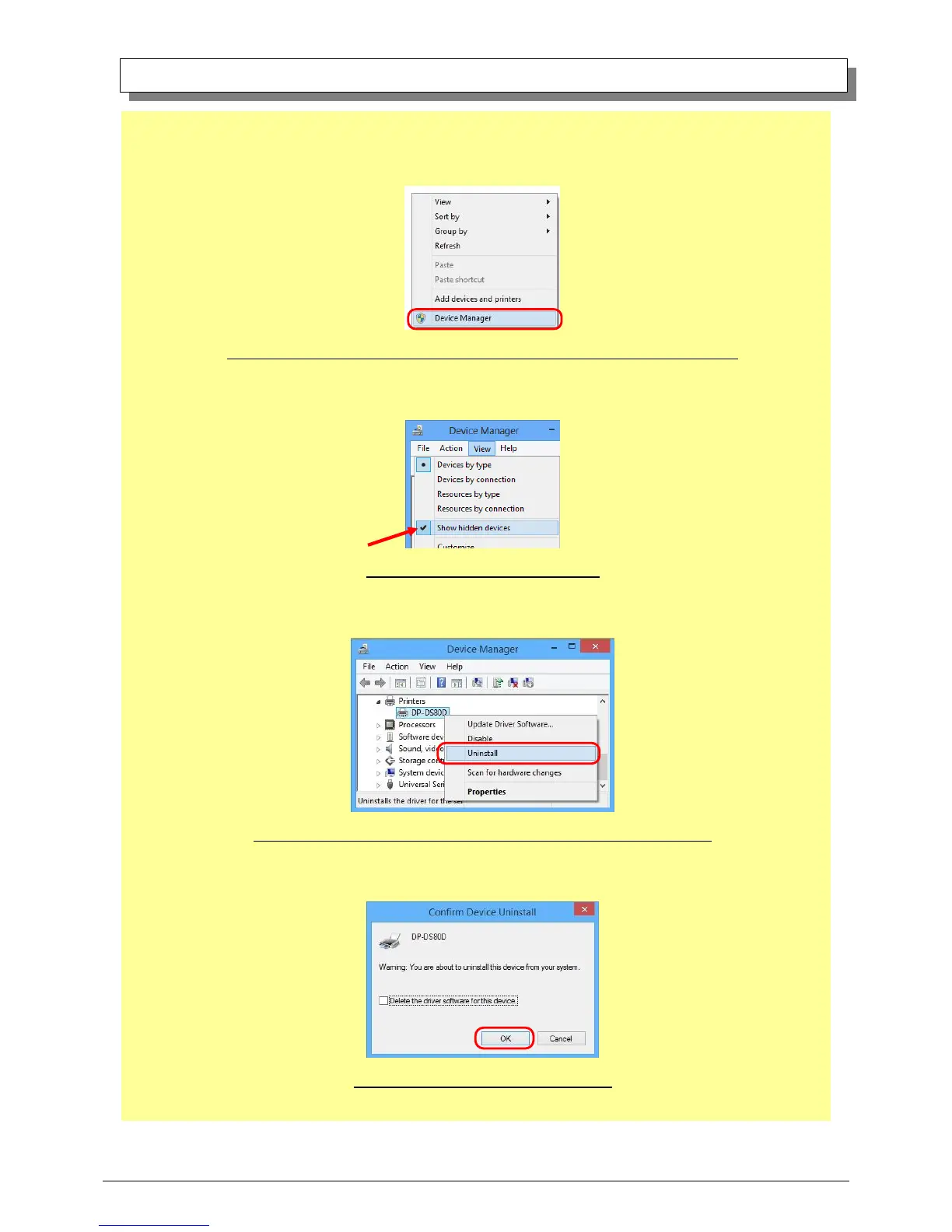 (iii) Right click on the "DP-DS80D" of "Printers", select "Uninstall".