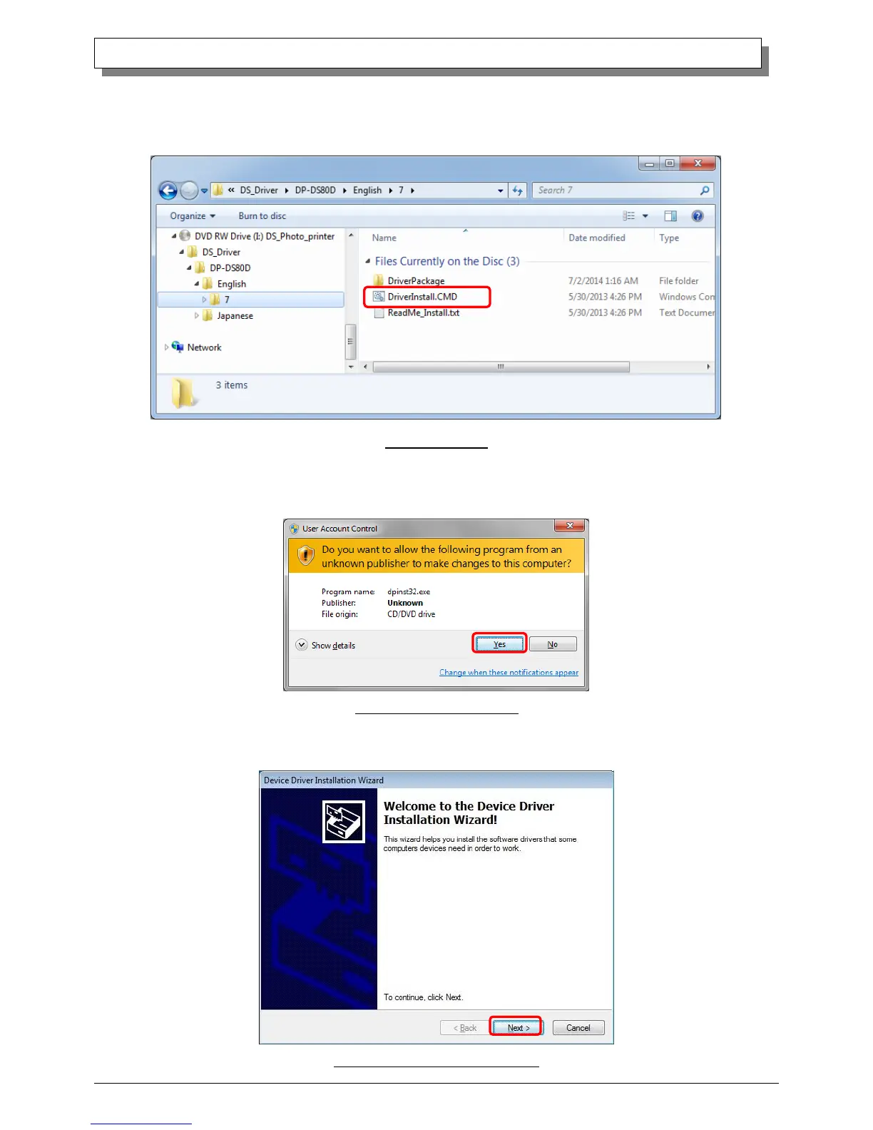 In the selected folder, double click on the file “DriverInstall.CMD”. (Depending on your operating environment, the .CMD