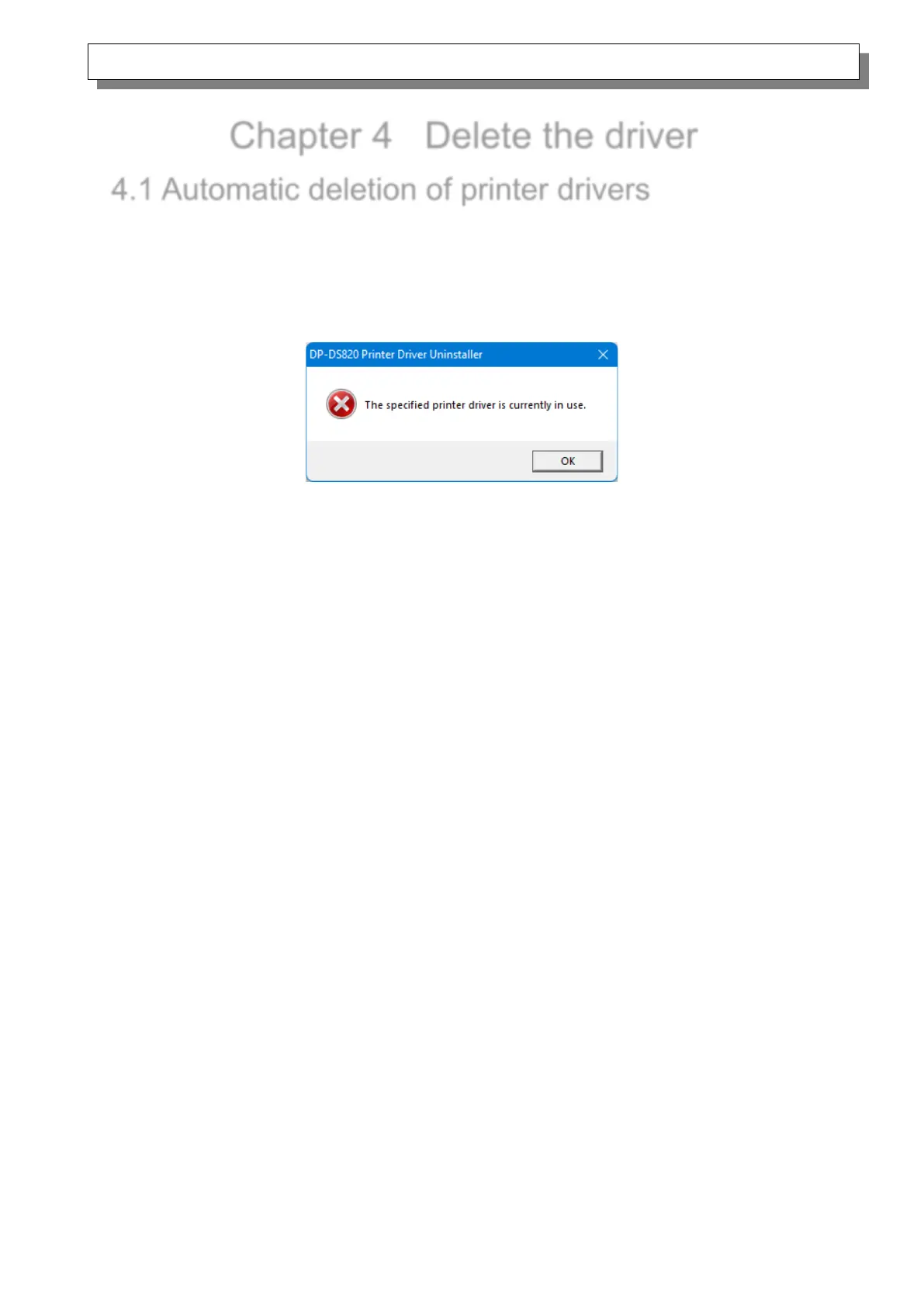 message, and the printer driver will not be deleted.