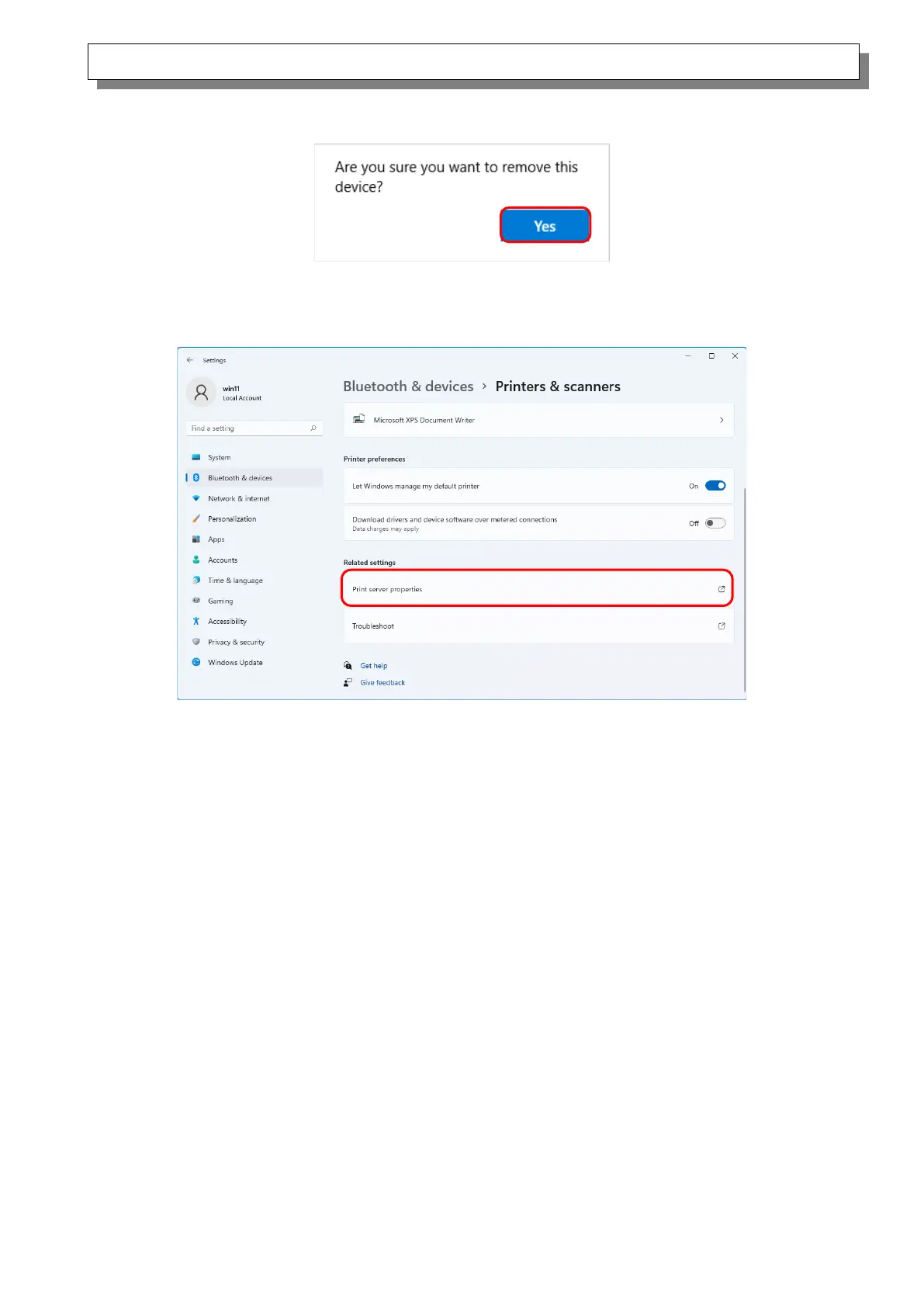 4) After removing the DP-DS820 printer, click “Print server properties” in “Printers & scanners”.