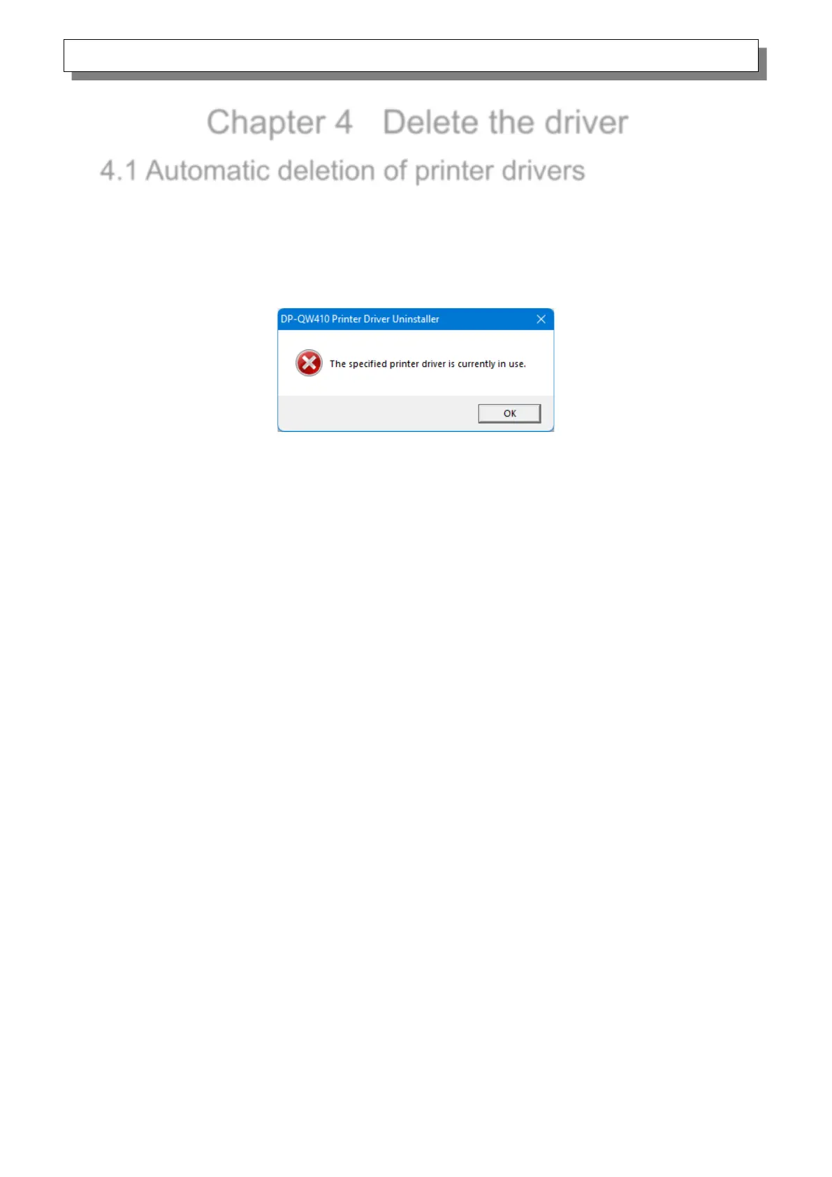 message, and the printer driver will not be deleted.