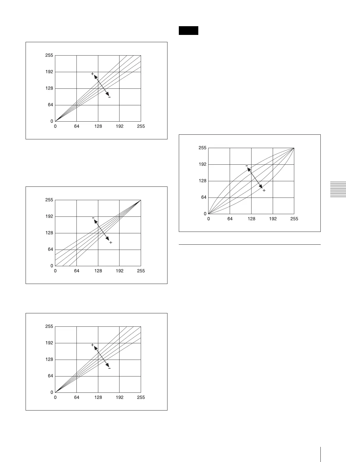 strengthens contrast, while adjusting both in the – direction