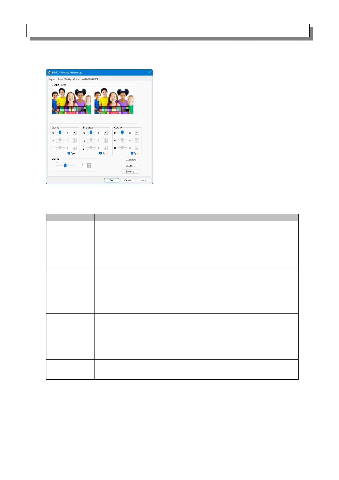 If the Handled by Driver check box is selected in the 2.2.4 Option, the adjustment values of the