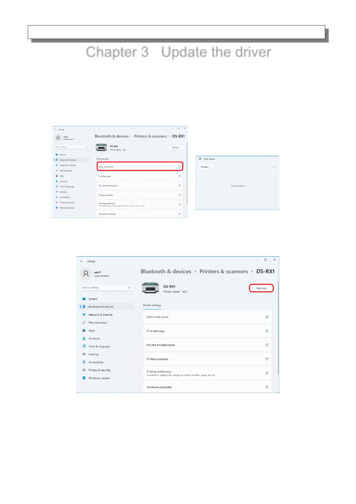 deleted on the “Printers & scanners” screen, and then click “Open print queue”. Confirm that