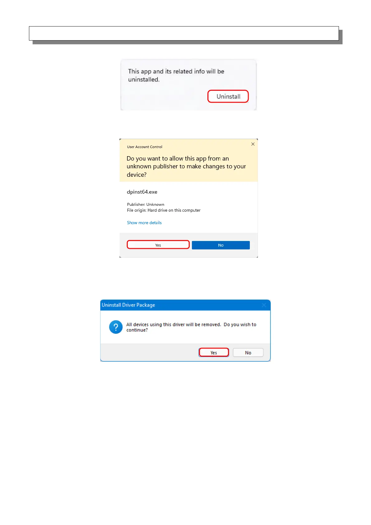 3) The “Uninstall Driver Package” screen appears. Click “Yes”.