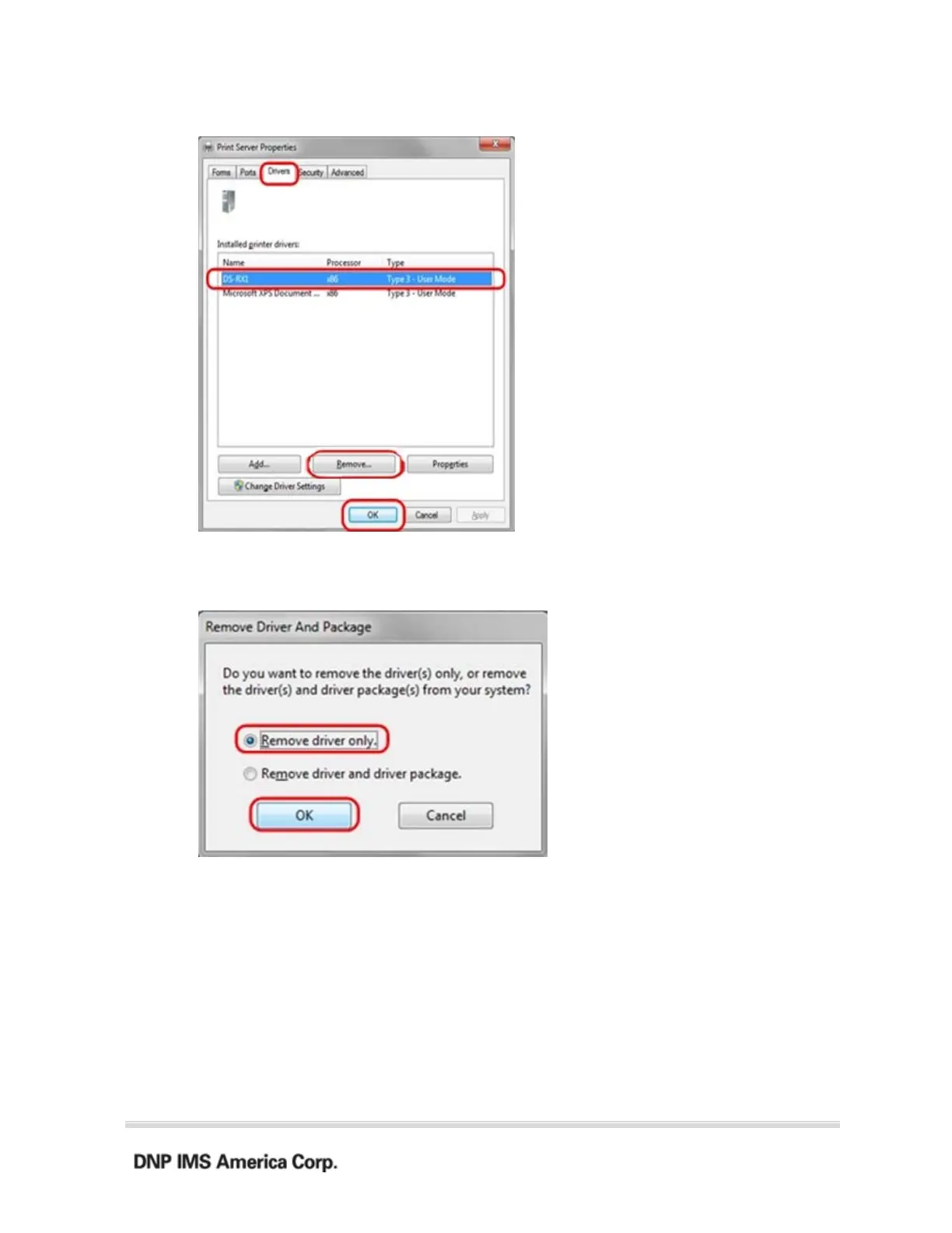 7. When the Remove Driver and Package window appears, select “Remove driver