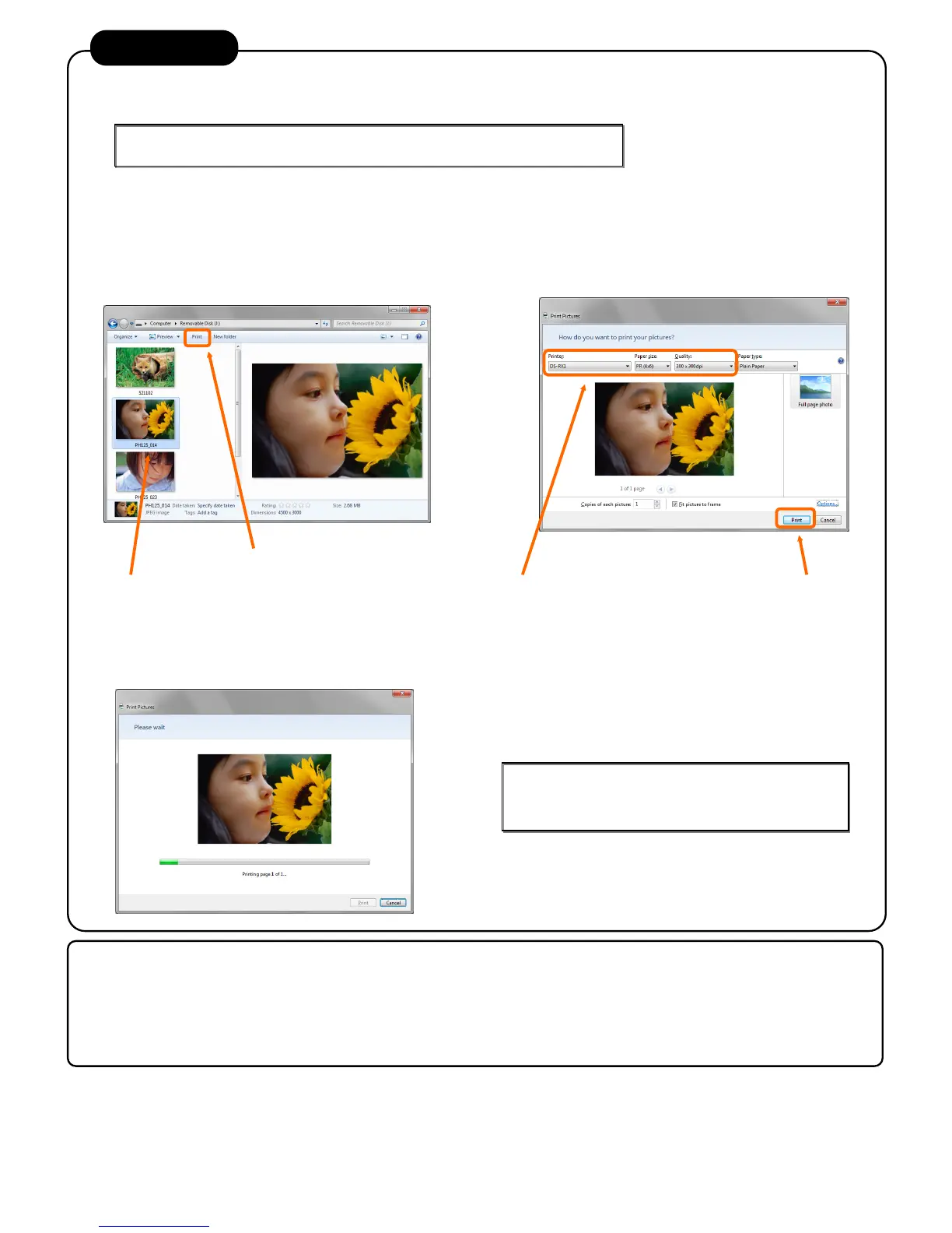 If the computer operating system is Windows 7, you can print from “print” menu of Explorer.