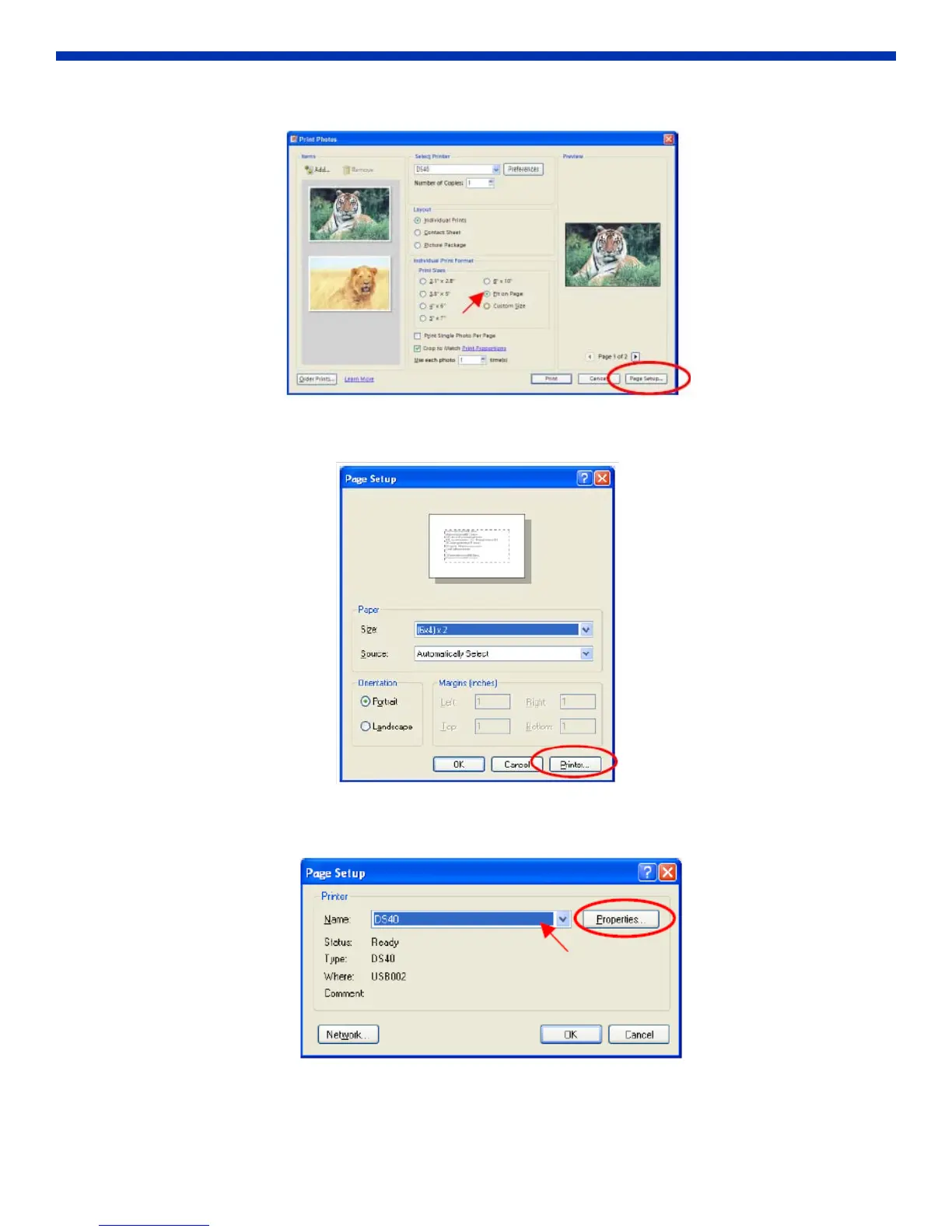 2. In Print Sizes, select Fit to Page. Then click Page Setup.