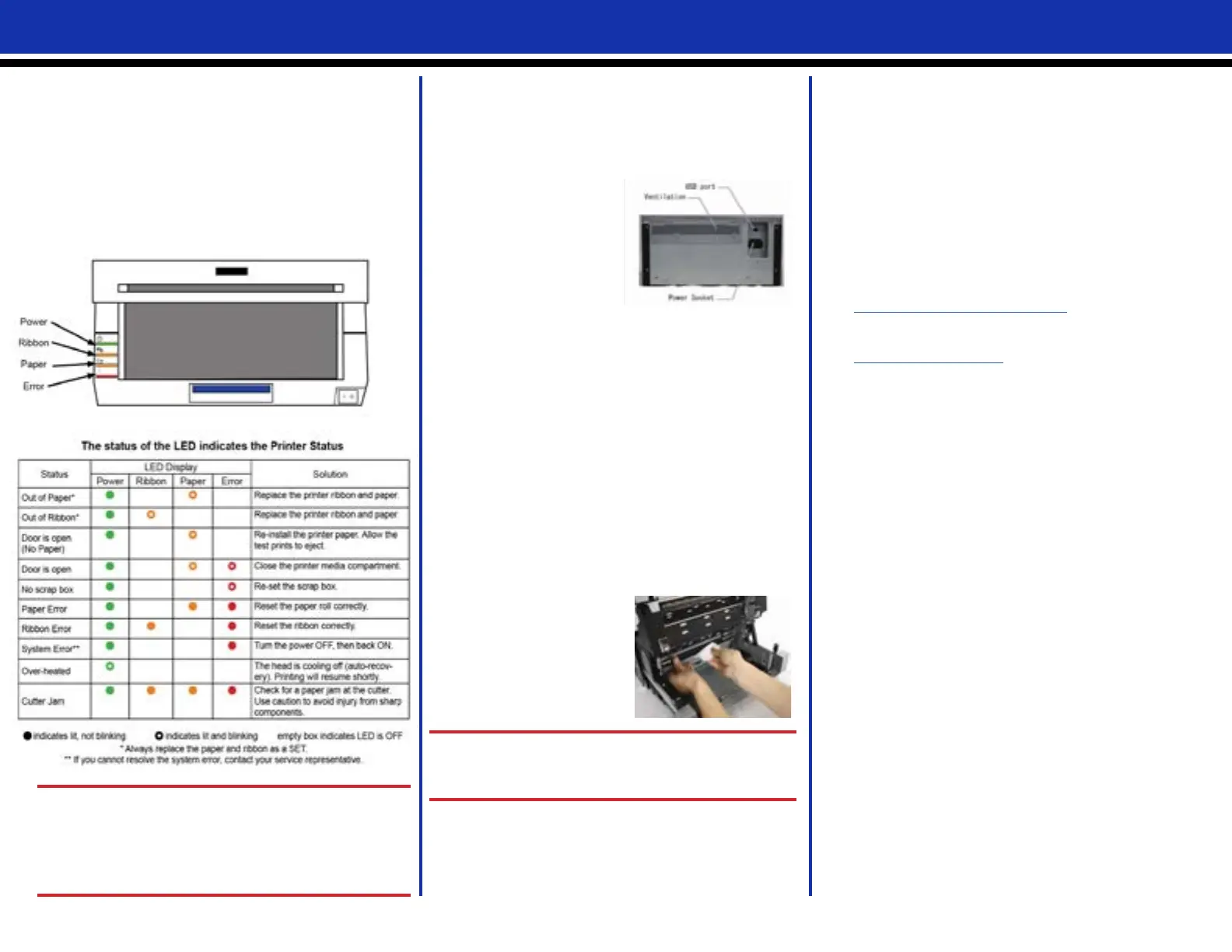 printer, such as paper jams, ribbon errors, open