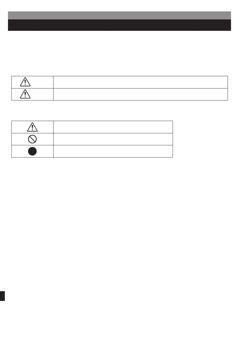 以下、誤った取り扱い方をして生じることが想定される内容を、危害や損害の大きさと切迫の程度を明示するために、「警告」と「注