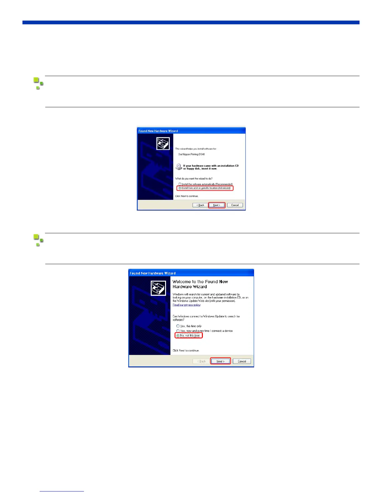 When using Windows XP SP2, the following screen (see below) may appear in the Found New
