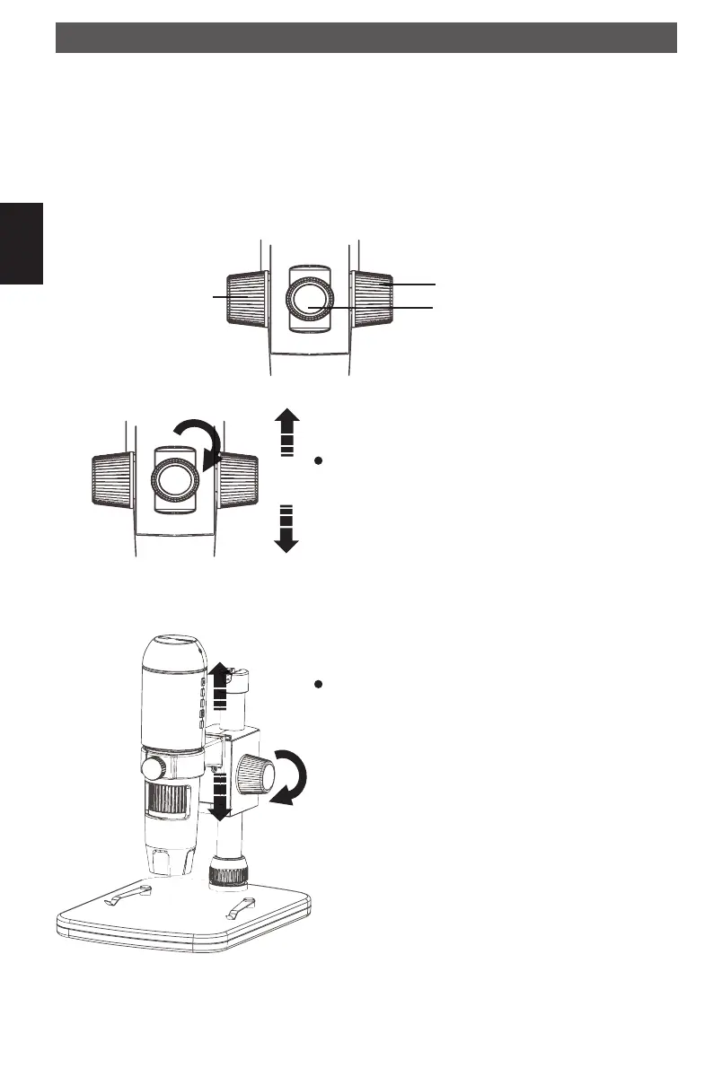 Die komplette Mikroskop-Halterung ist an einem Metallrohr befestigt und kann mit mehreren
