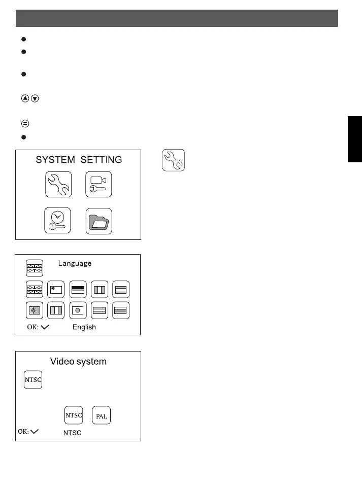 System setting: choose language, video system,