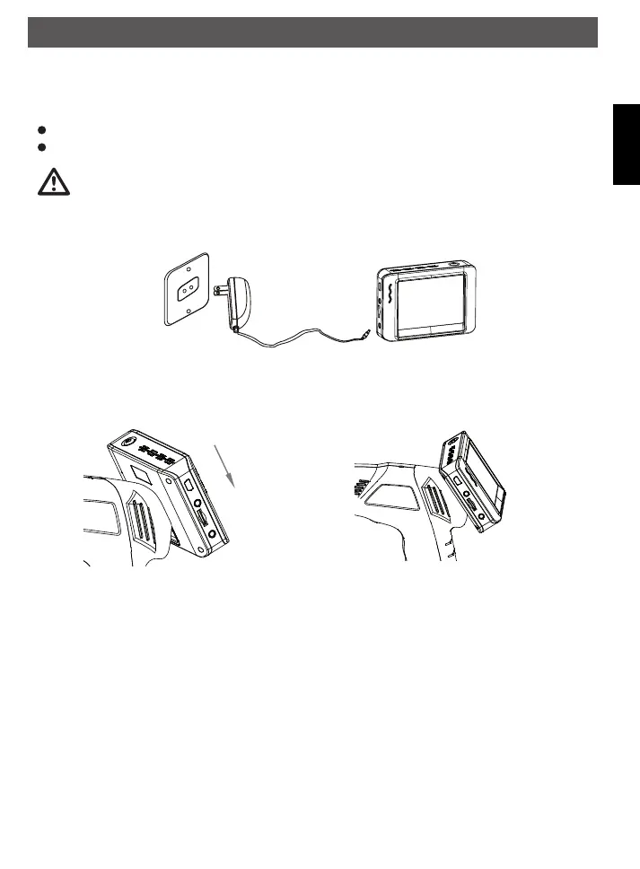 Monitors befinden sich dazu 4 Kontakte und eine Halterung, die auf das Handgerät aufgesetzt werden kann.