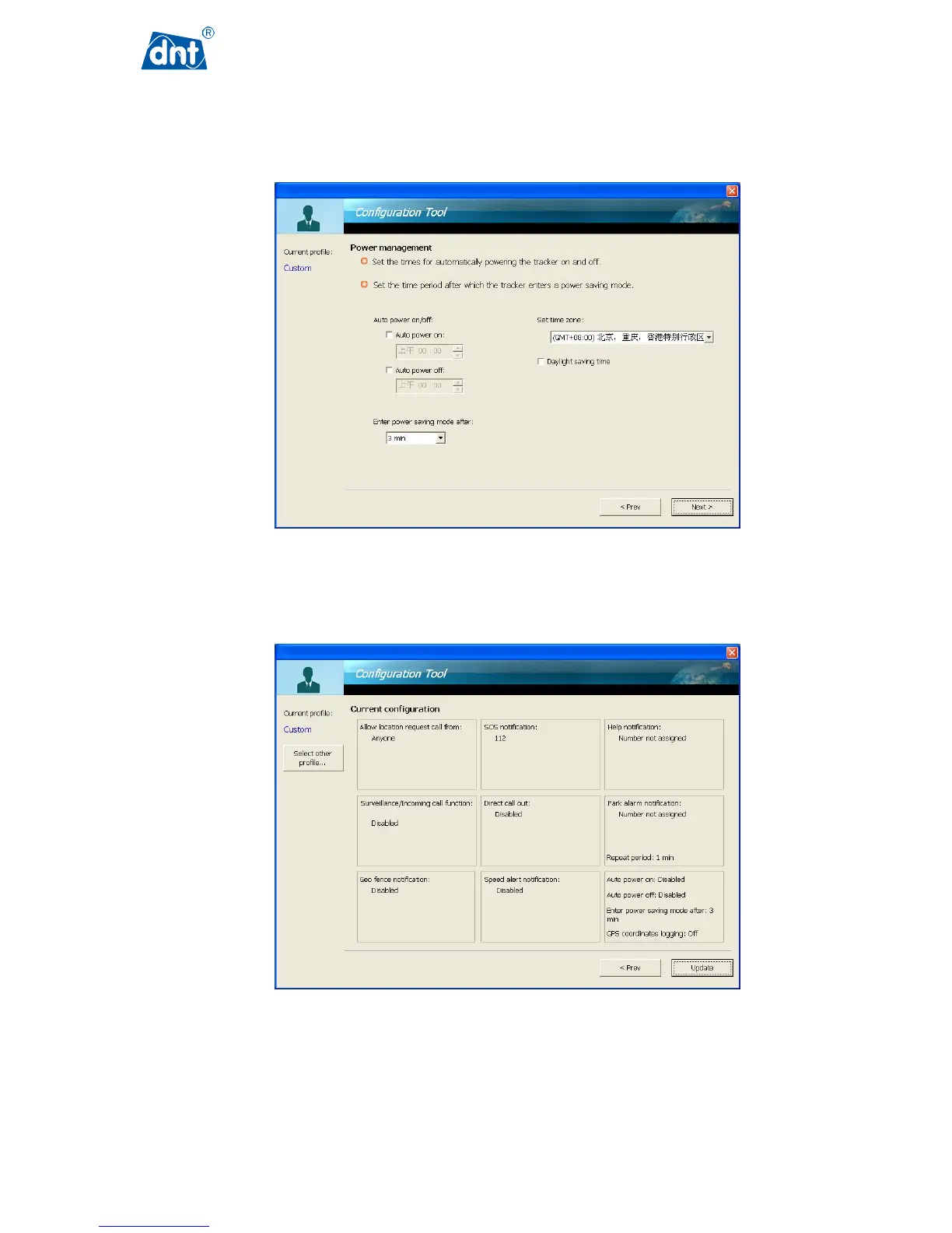 function. The user can also choose a time period for the GPS Tracker to enter power saving mode after certain