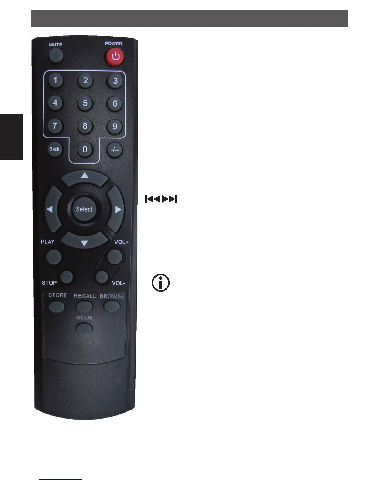Recall: Use to Play up the pre-setting stations.