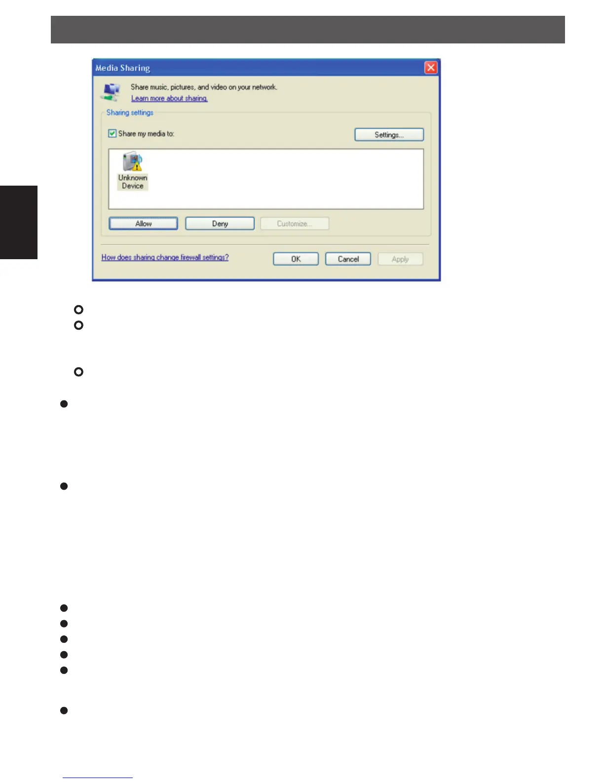 Selecting ‘Media Sharing…’ for Windows Media Player11 :