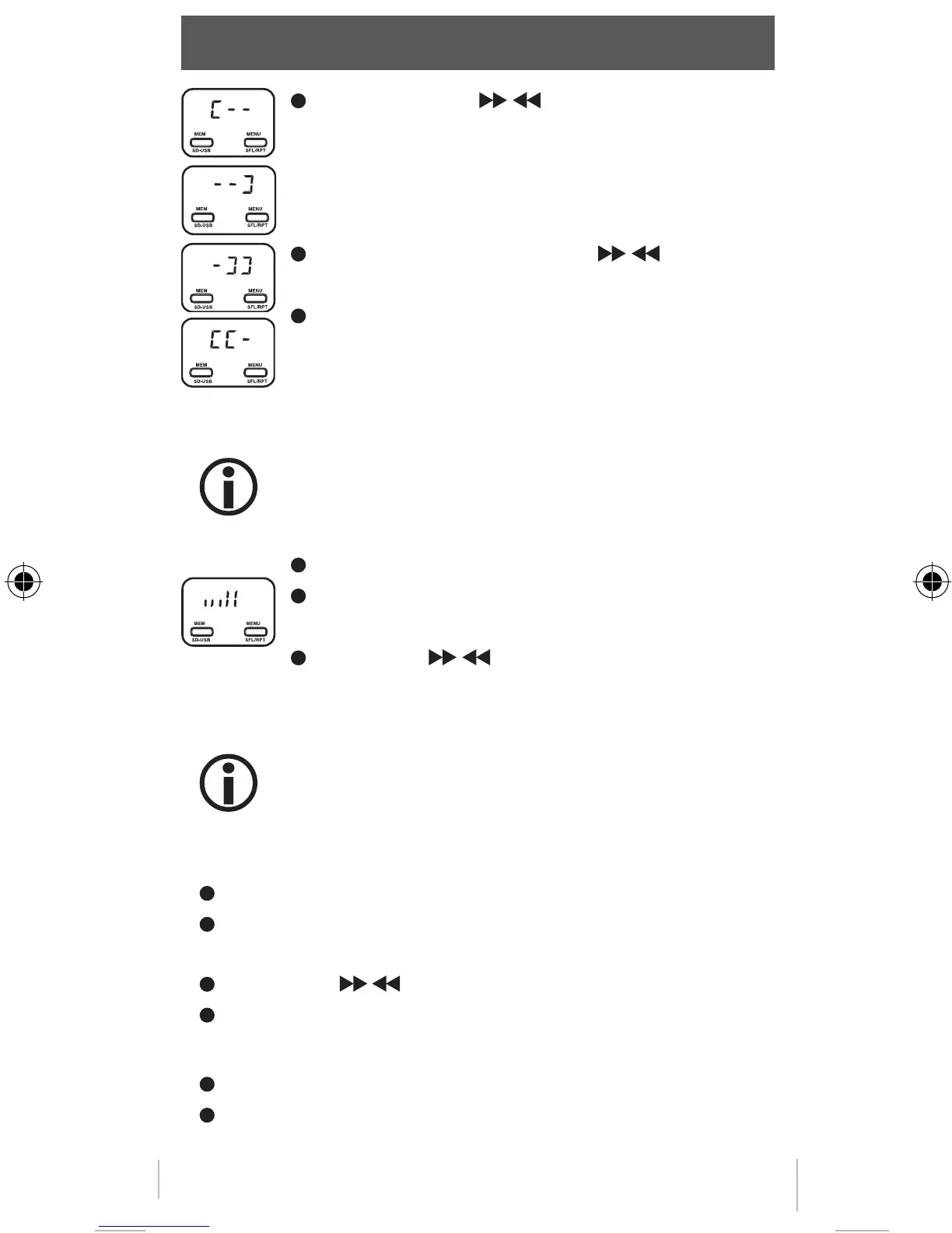 Druk kort op de / -toetsen om de volgende