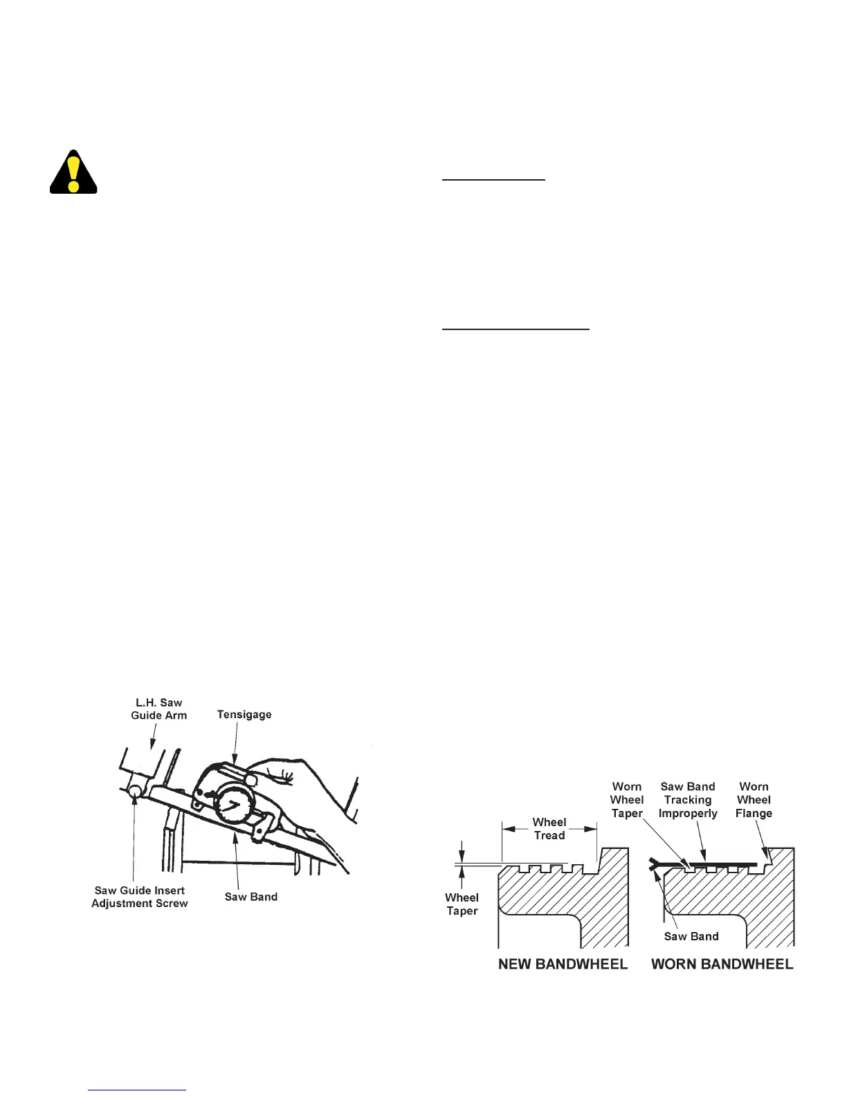 ange and wheel tread for wear. Saw bands will