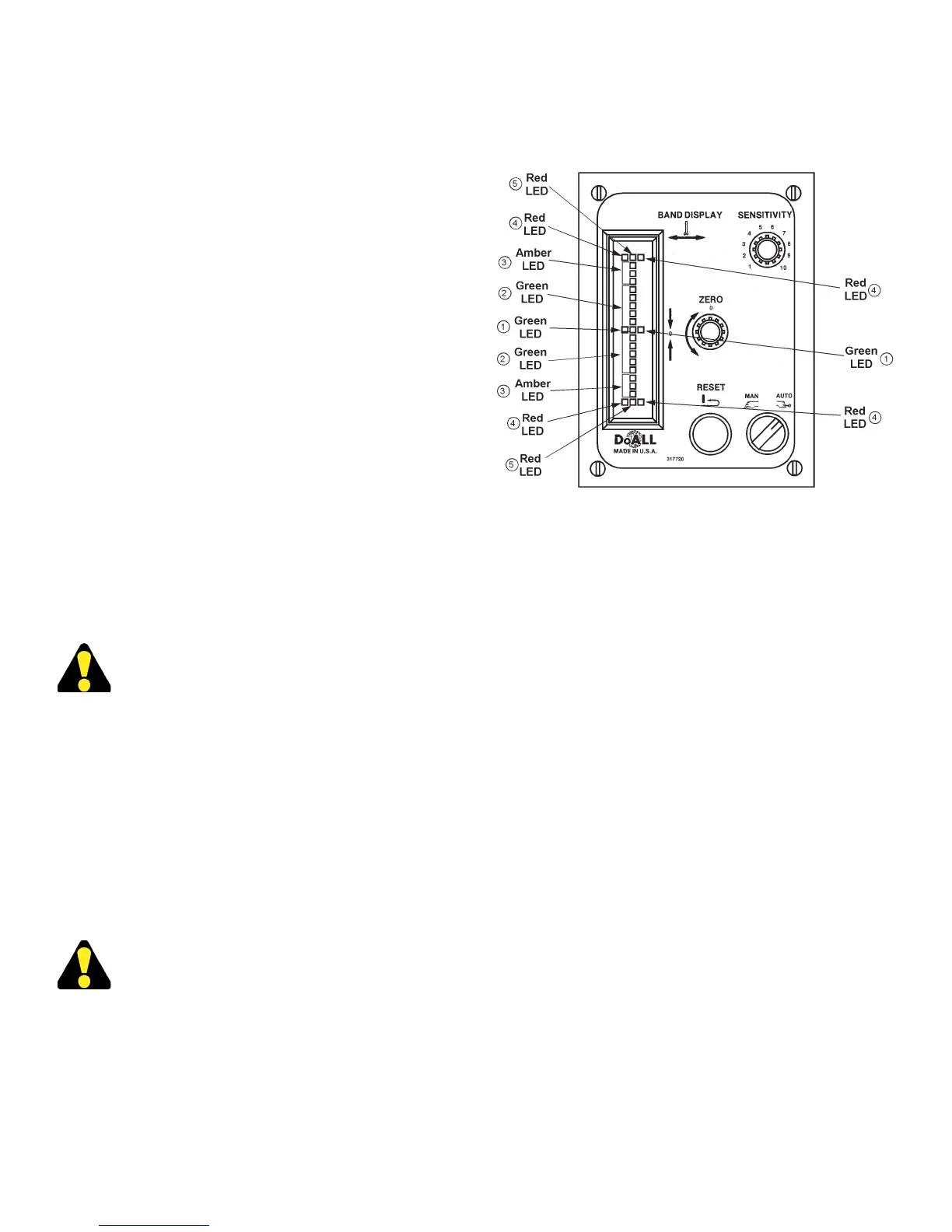 3. Amber LED's indicate a caution region. These