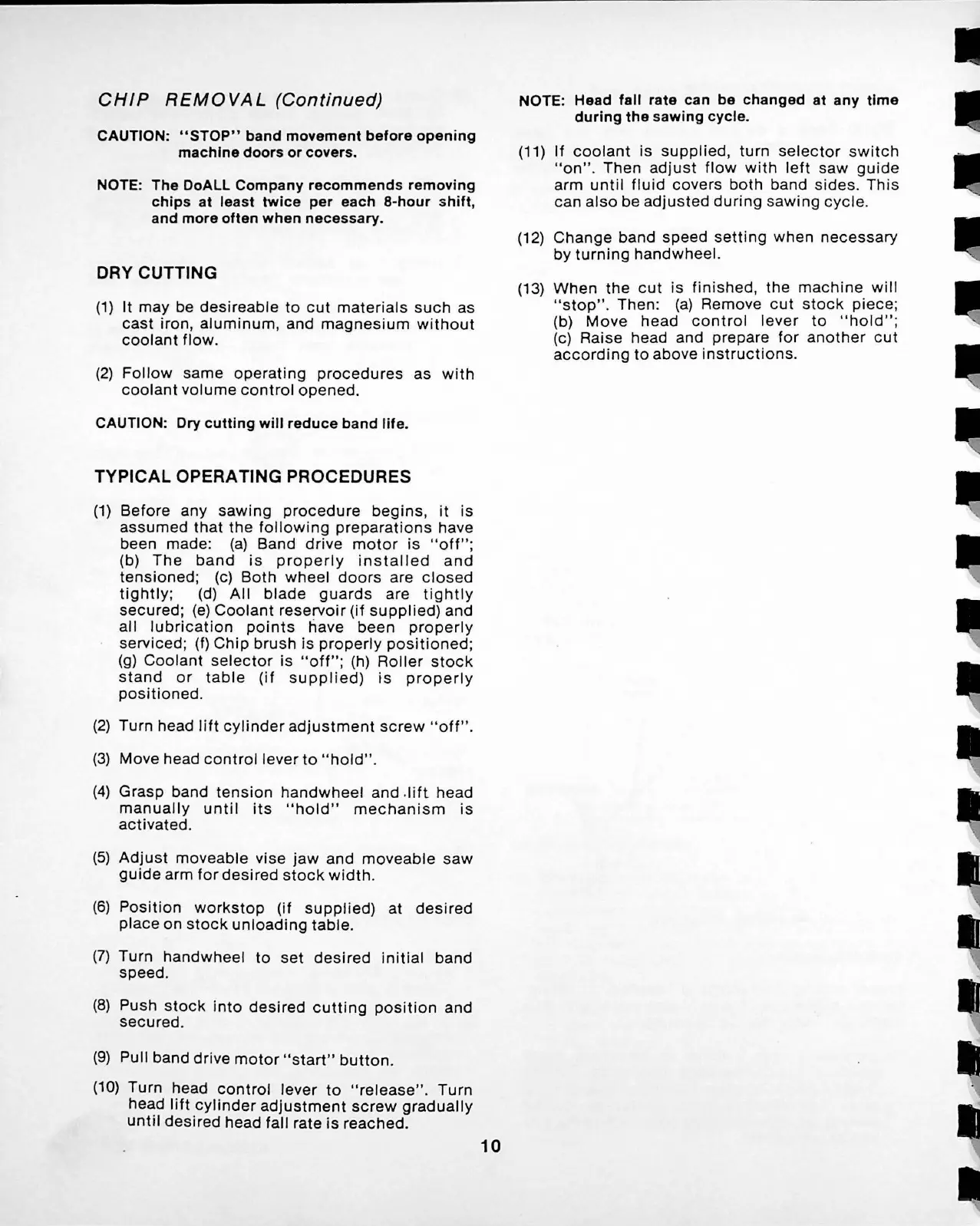 CAUTION: Dry cutting will reduce band life.
