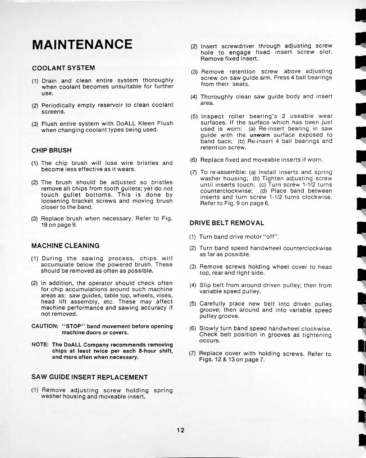 DoAll C-916 - Maintenance; Coolant System; Chip Brush; Machine Cleaning