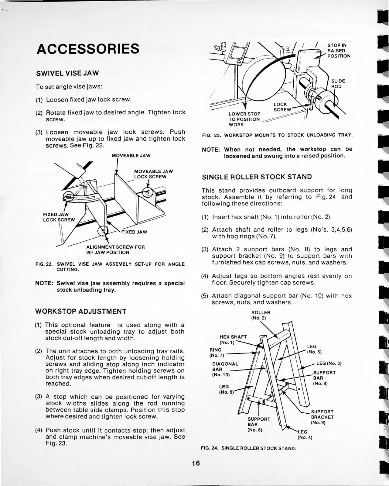 DoAll C-916 - Accessories; Swivel Vise Jaw; Workstop Adjustment; Single Roller Stock Stand