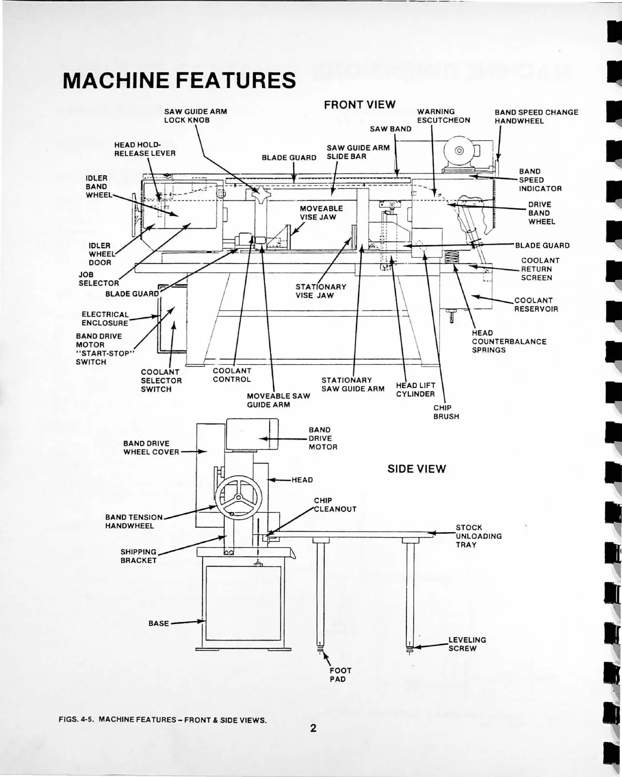 DoAll C-916 - Machine Features; Front View; Side View