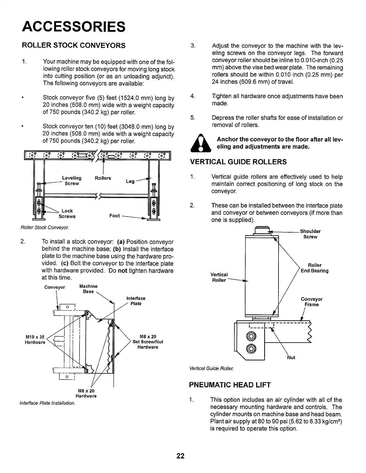 DoAll C-916S - Accessories; Roller Stock Conveyors; Vertical Guide Rollers; Pneumatic Head Lift